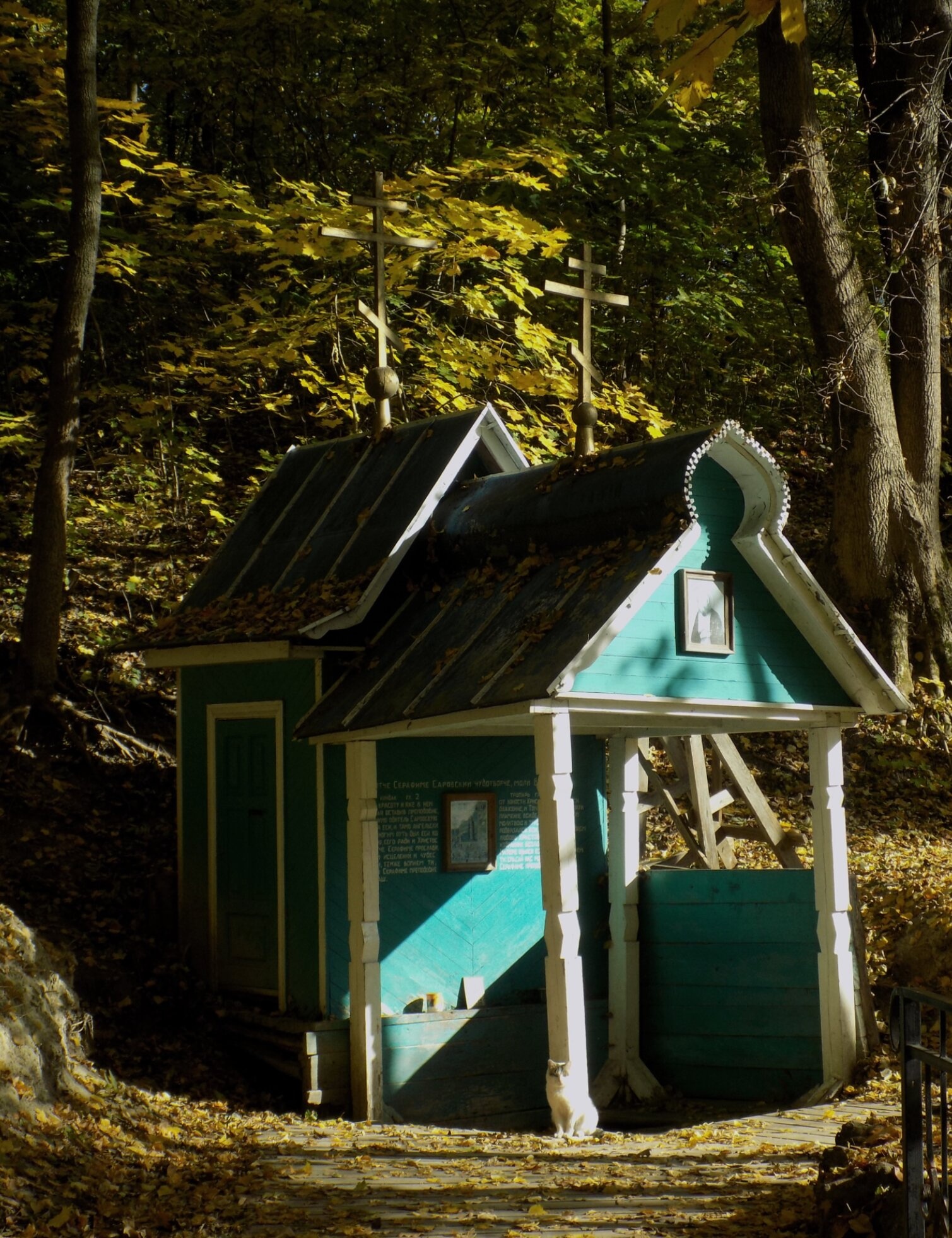 На представленной фотографии запечатлена надкладезная часовня, освящённая в честь преподобного Серафима Саровского. Сие малое архитектурное сооружение расположено на территории мужского монастыря «Коренная пустынь», что в Курской области, у знаменитого святого источника, обретённого в XIII веке. Часовня возведена непосредственно над источником, из которого паломники во множестве черпают целебную воду, почитаемую в православном мире как чудотворную.