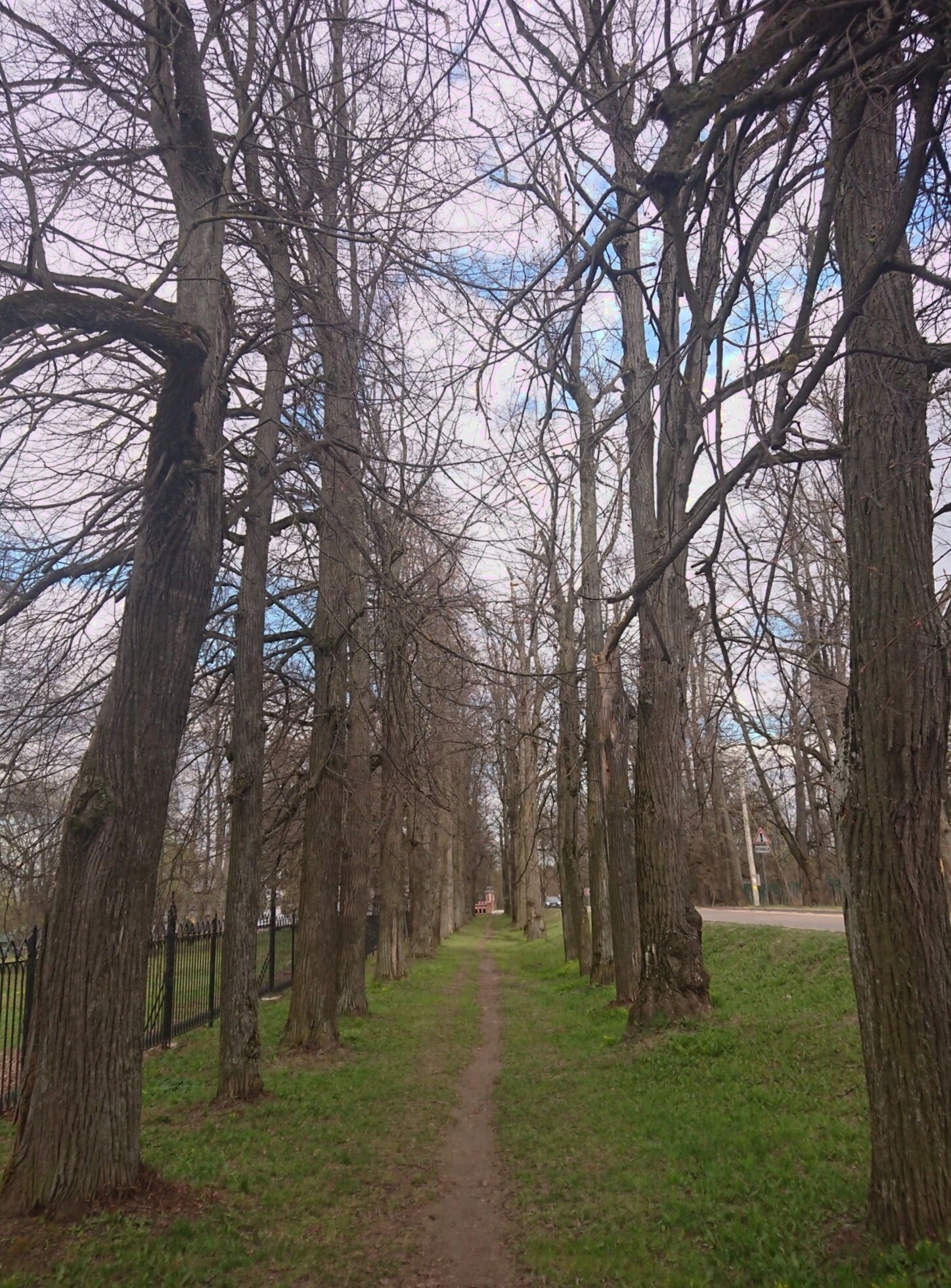Отсутствие листвы на деревьях указывает на позднеосенний или ранневесенний период, когда природа пребывает в состоянии ожидания обновления. Такое природное окружение символически перекликается с христианским учением о воскресении и вечной жизни. Каждый элемент этой композиции - от древних деревьев до кованой ограды - свидетельствует о бережном сохранении памяти предков и почитании святых мест.