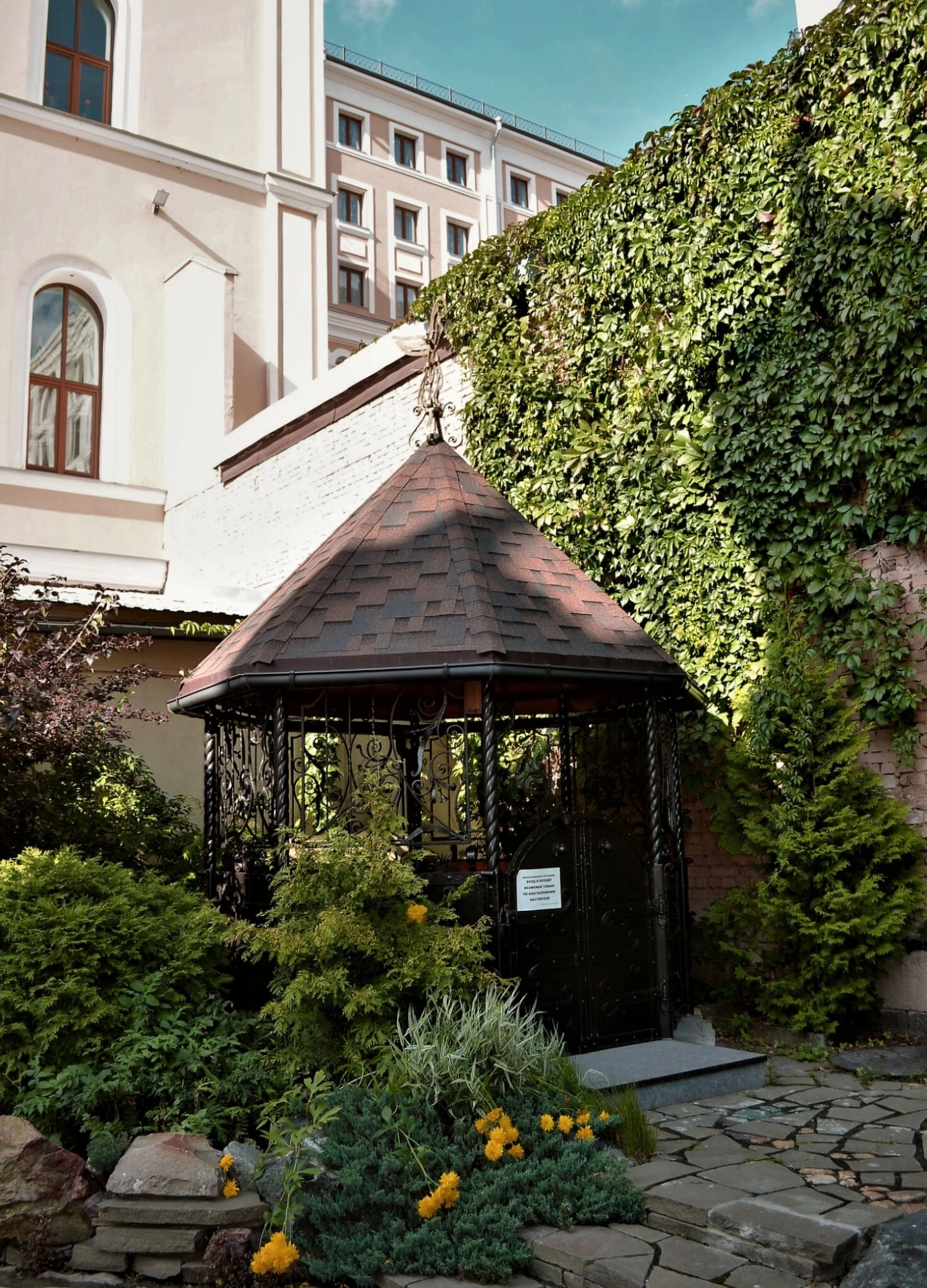 На представленной фотографии запечатлена часовня-сень над источником, расположенная в святом месте — на территории храма Софии Премудрости Божией на Софийской набережной в Москве. Это благодатное место привлекает множество православных верующих, ищущих духовного утешения и молитвенного покоя.