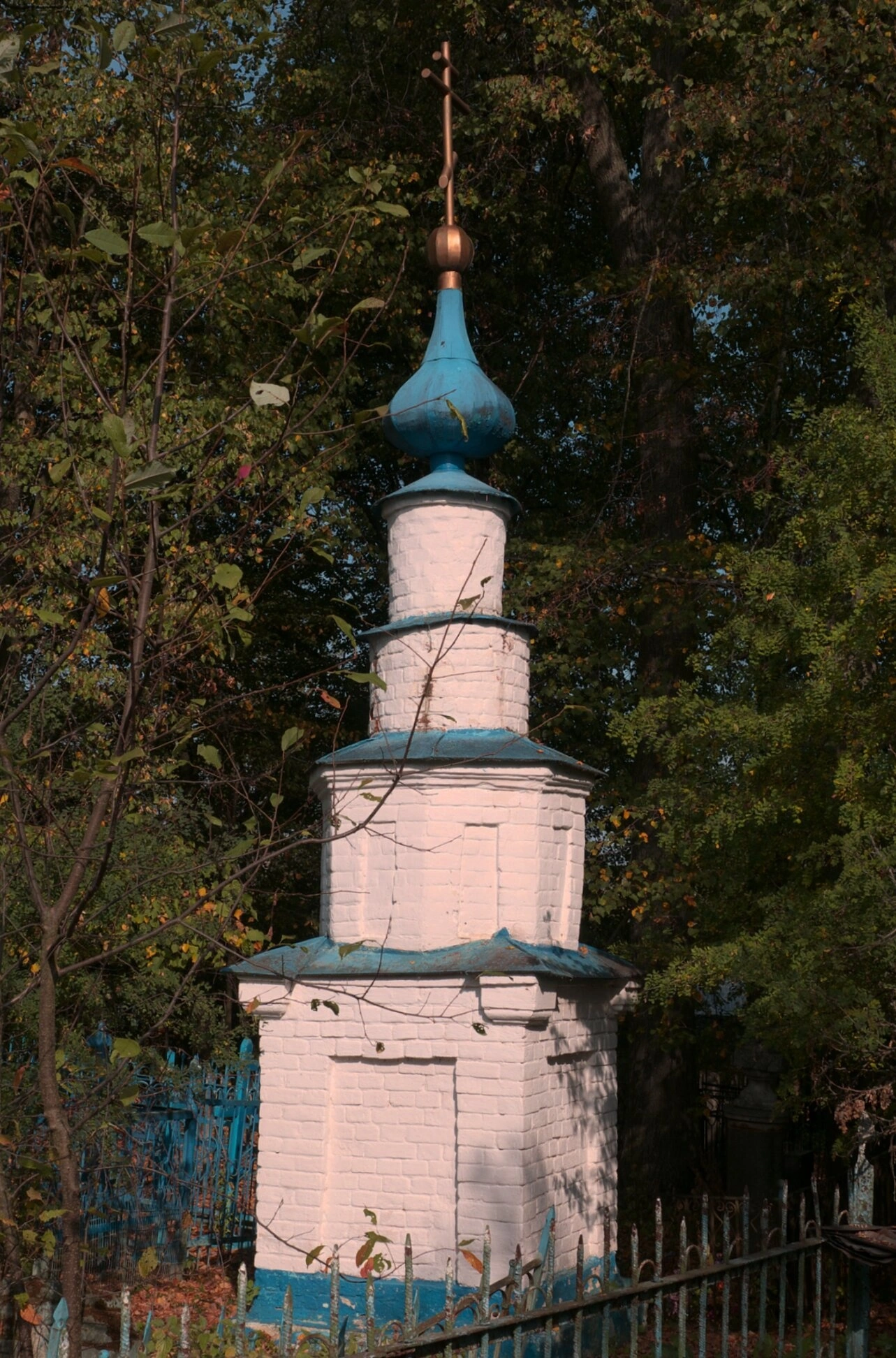 На представленной фотографии запечатлена часовня-столп, относящаяся к храмовому комплексу Церкви Преподобного Сергия Радонежского, расположенная в окрестностях города Ступино Московской области. Данный памятник православной архитектуры входит в число объектов культурного наследия Ступинского района.