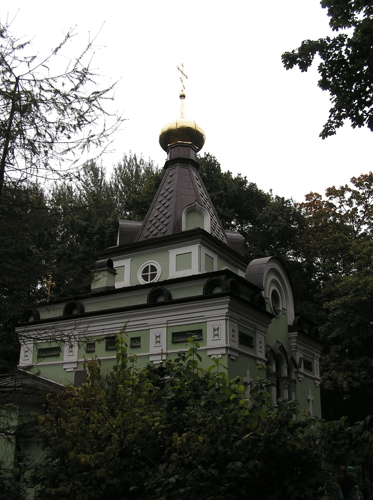Венчает часовню золоченый купол, увенчанный православным крестом, который символизирует победу жизни над смертью. Крыша сложной формы покрыта темной металлической черепицей, что создает благоговейный контраст с сиянием купола. По углам здания размещены лепные кресты, а узкие арочные окна украшены витыми коваными решетками, характерными для церковного зодчества.