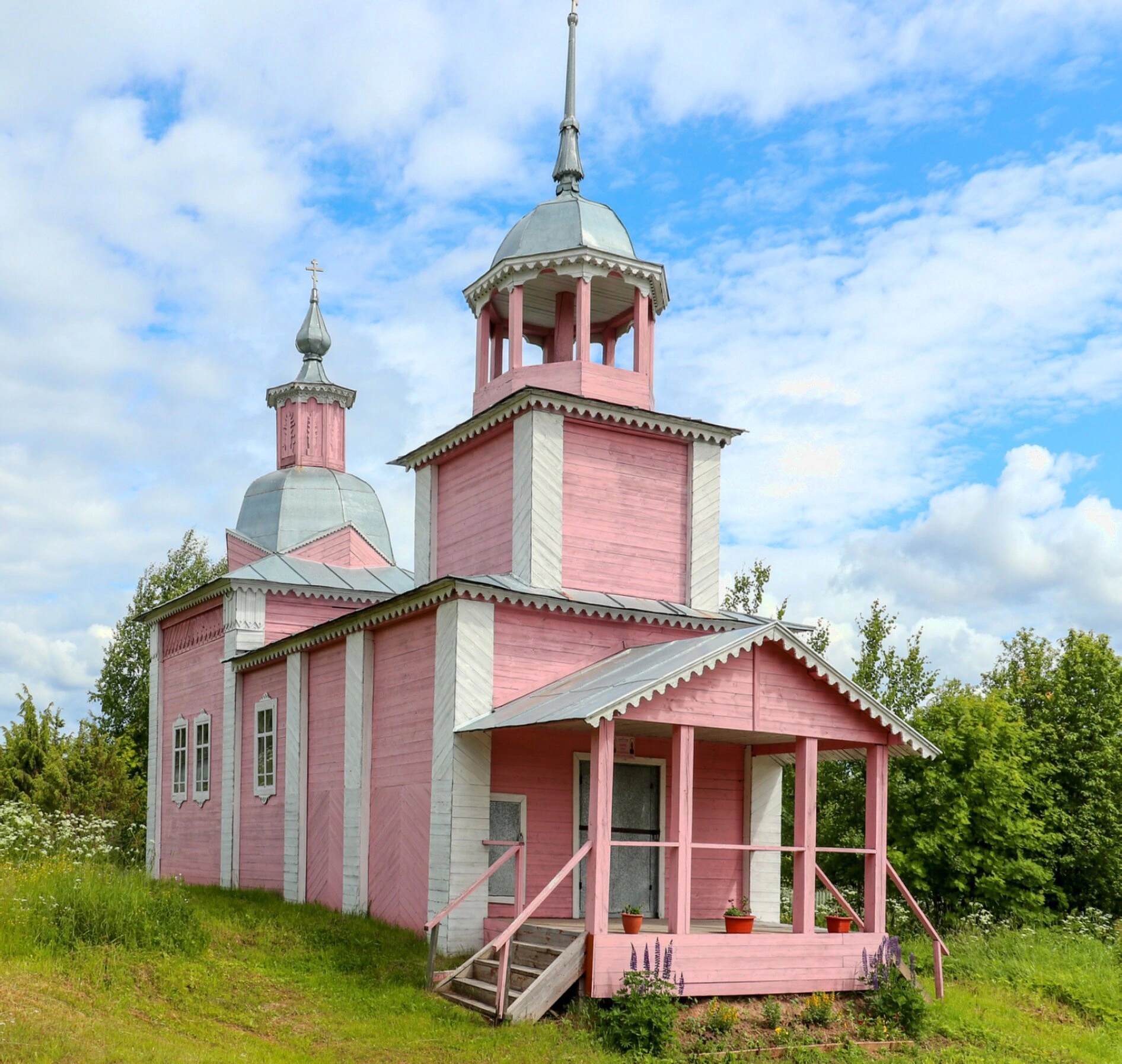На представленной фотографии запечатлена часовня во имя святых первоверховных апостолов Петра и Павла, расположенная в селе Ыб Сыктывдинского района Республики Коми. Это деревянное культовое сооружение, являющееся образцом традиционного православного зодчества.