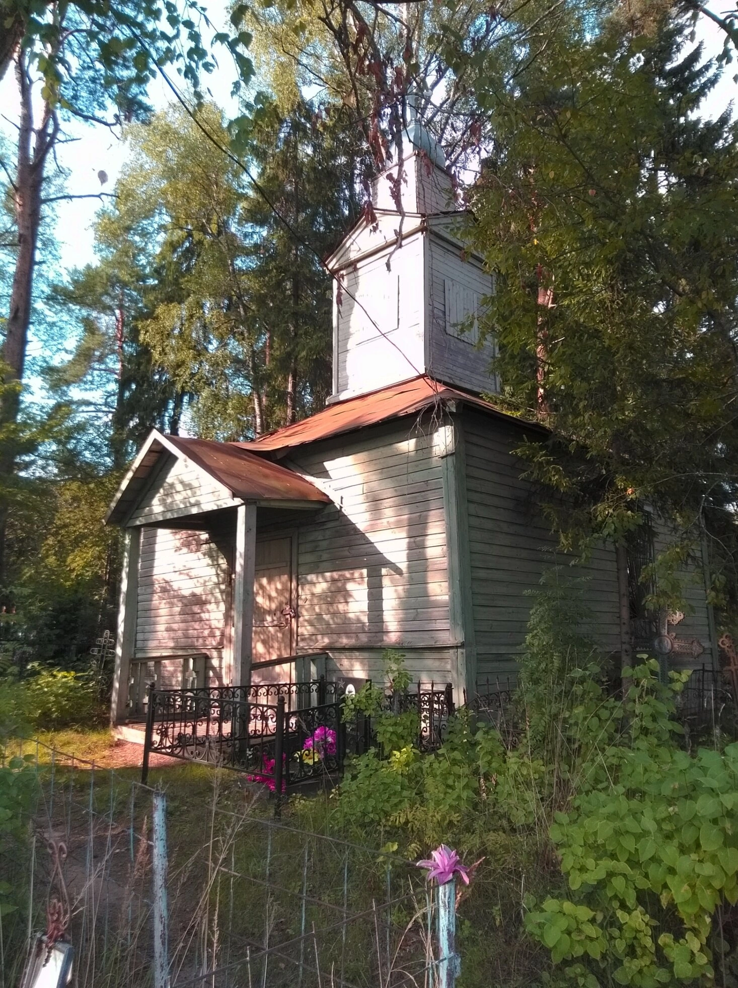 Архитектура часовни характерна для русского деревянного зодчества. На фотографии можно видеть строение, увенчанное скромной главкой, что является традиционным завершением православных молитвенных сооружений. Металлическое ограждение вокруг часовни не только обозначает sacred boundary священную границу территории, но и символически отделяет мирское пространство от места сугубой молитвы. Цветы на переднем плане свидетельствуют о заботливом отношении местных жителей к этой святыне.