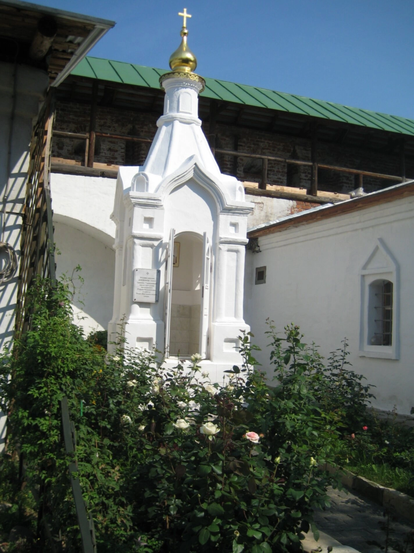 На представленной фотографии запечатлена историческая святыня Москвы — часовня-усыпальница, в которой покоятся останки известной затворницы, старицы Досифеи, в миру княжны Таракановой. Эта часовня расположена в священном подклете Спасо-Преображенского собора Новоспасского ставропигиального мужского монастыря.