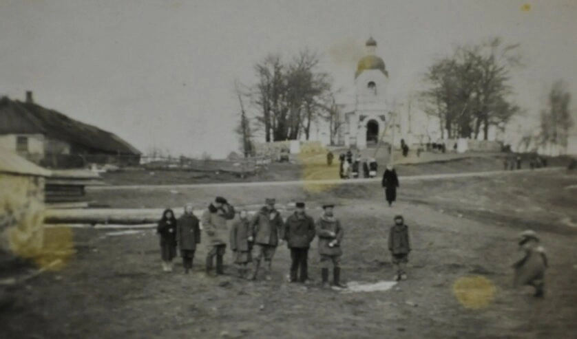 Чёрно-белая фотография Свято-Никольской церкви в Озернице 1944 года