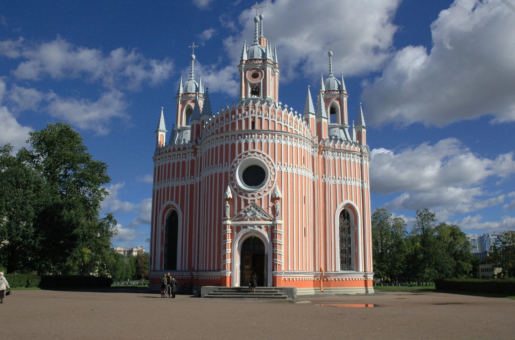 На представленной фотографии запечатлена Чесменская церковь, освящённая в честь Рождества святого Иоанна Предтечи. Этот уникальный православный храм расположен в Санкт-Петербурге и является выдающимся памятником архитектуры эпохи императрицы Екатерины II.