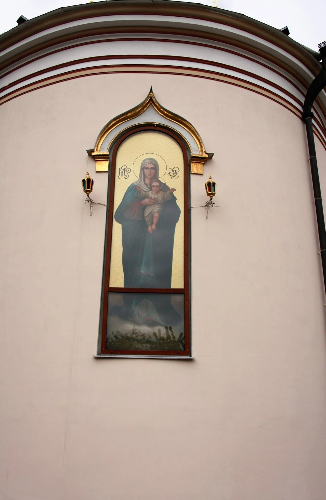 Чудотворная икона Богородицы на фасаде Свято-Троицкого монастыря в Кореце