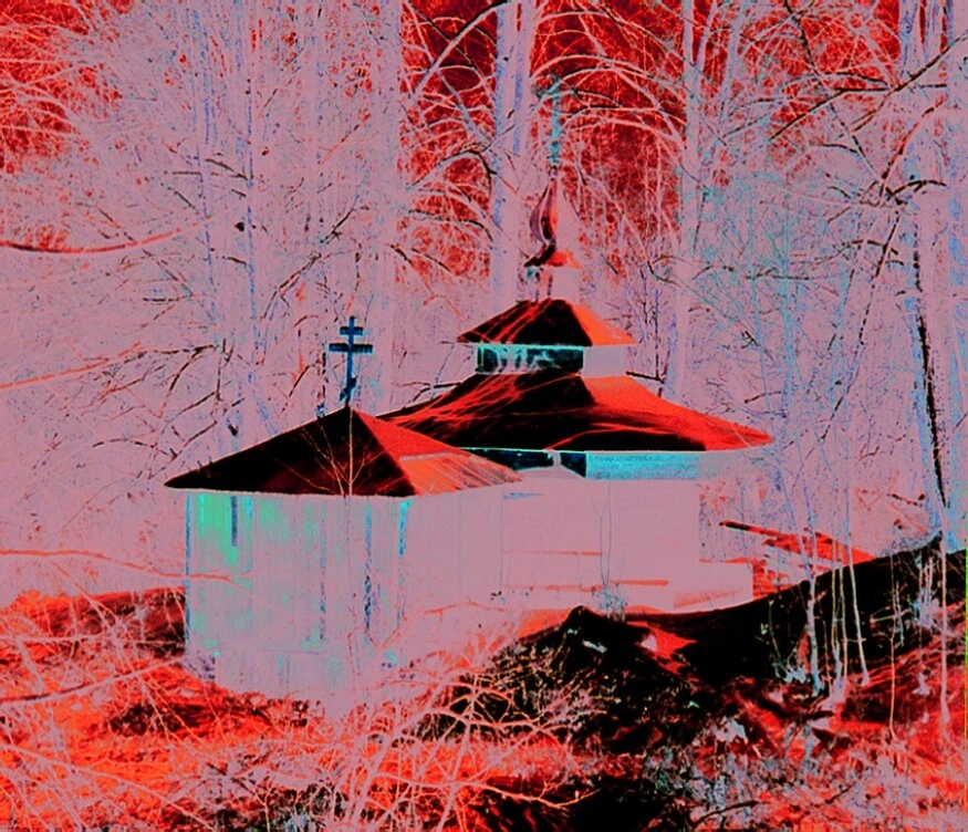 Часовня, выполненная из дерева в традициях русского православного зодчества, увенчана скромным куполом-луковкой, на котором возвышается Святой Крест — символ спасения и искупления. Её архитектурный облик, характерный для северных русских земель, гармонично вписывается в суровый зимний пейзаж, создавая образ уединённой молитвы и строгой красоты.