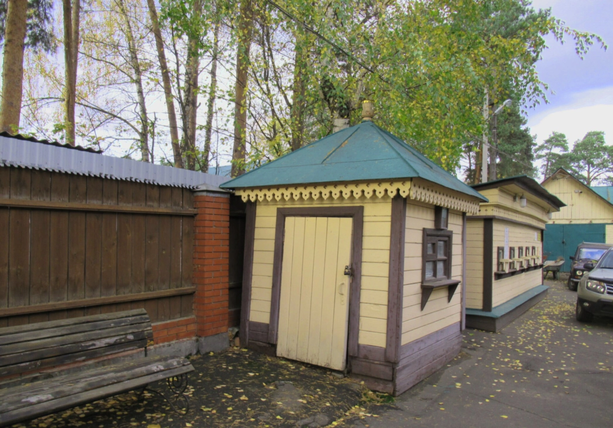 Деревянная сторожка на территории Троицкой церкви в Удельной