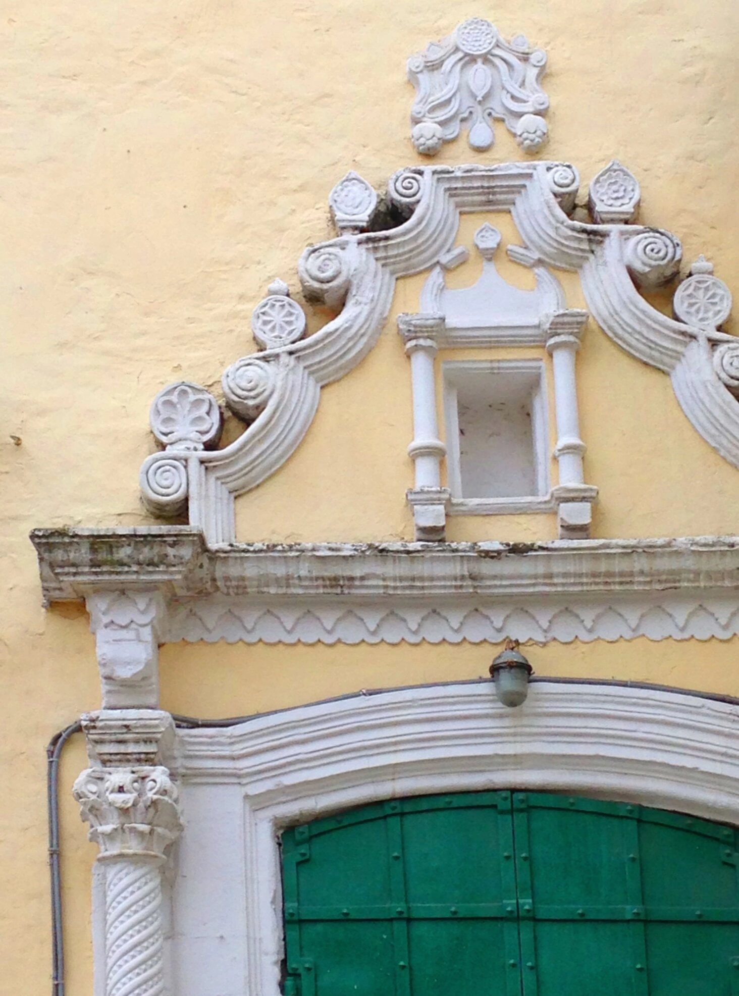 Дверной проём обрамлён каменным наличником и увенчан изящным килевидным фронтоном, характерным для русского церковного зодчества XVII столетия. Фронтон богато украшен резными элементами и орнаментом, что свидетельствует о высоком мастерстве безымянных русских зодчих, трудившихся во славу Божию. Выше расположено небольшое арочное окно, предназначенное для освещения внутреннего пространства притвора.