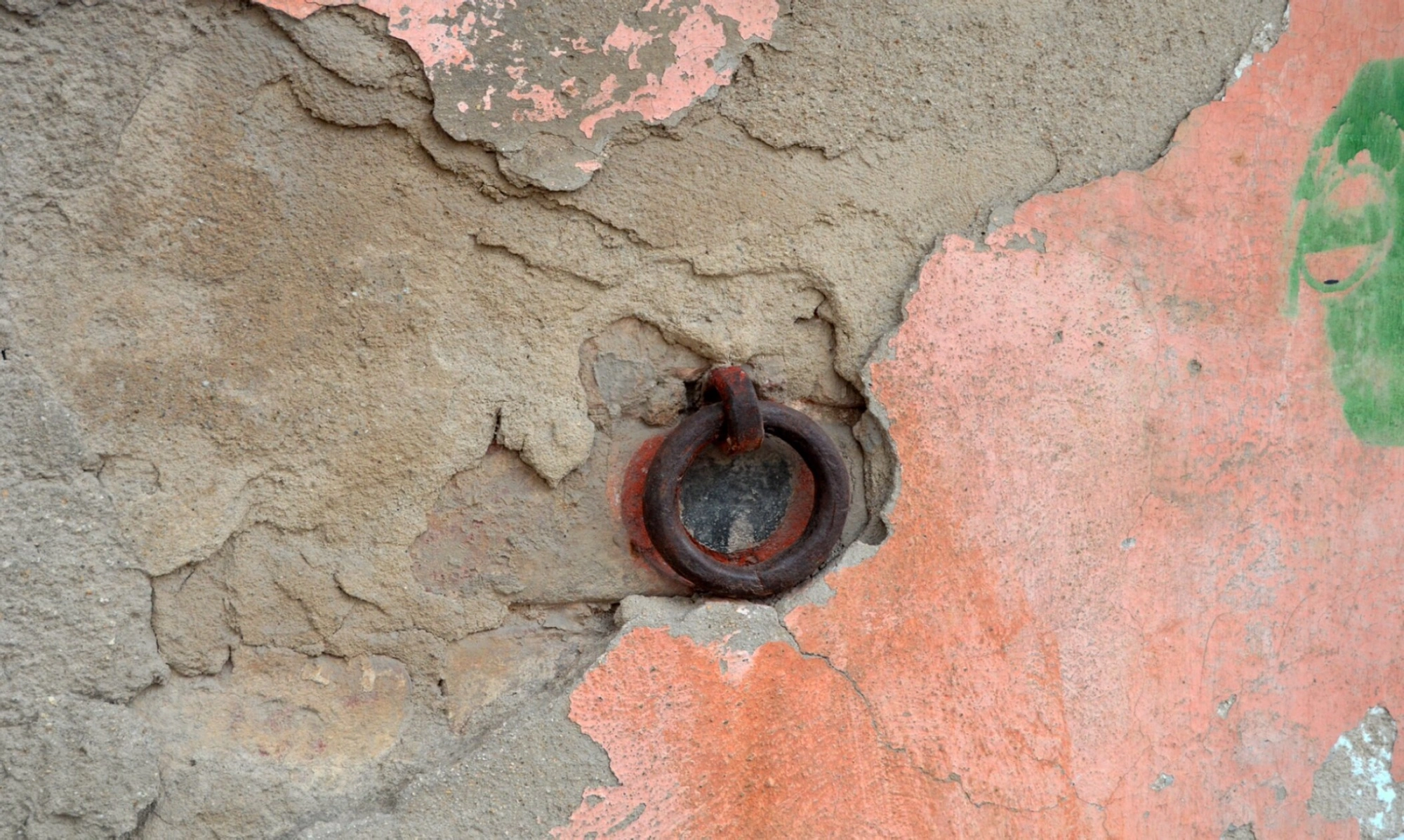 Храм в честь Вознесения Господня представляет собой значимый объект культурного наследия Невьянска. На снимке отображён фрагмент стены этого духовного центра, где каждое архитектурное решение имеет глубокое символическое значение. Металлическое кольцо, покрытое патиной времени, напоминает о непрерывной цепи молитв и духовных традиций, сохраняемых в стенах этой святыни.