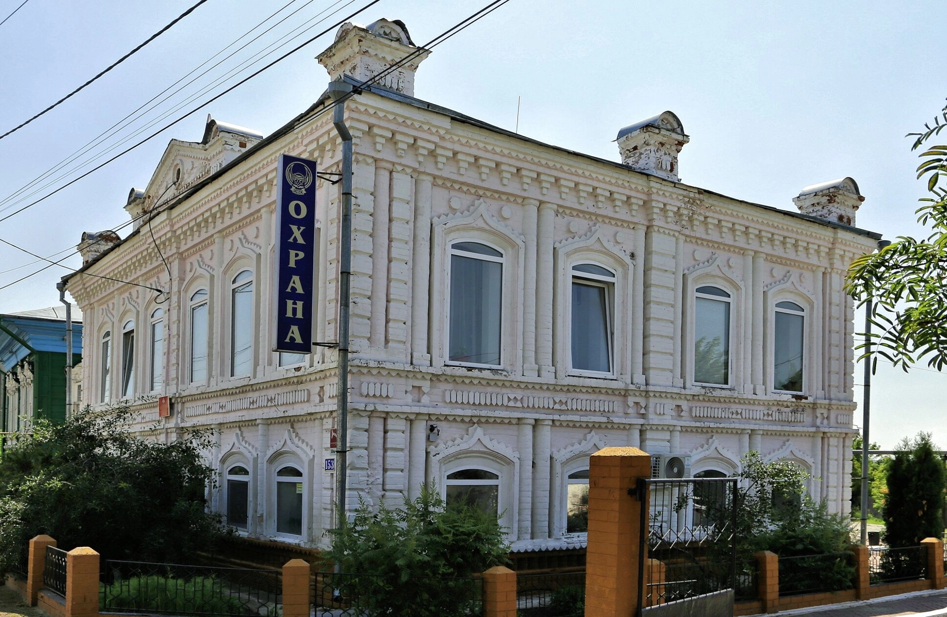 На представленной фотографии запечатлён исторический дом купца А.И. Семёнова, расположенный в городе Тюмень по адресу улица Республики, дом 25. Данное здание является признанным объектом культурного наследия и представляет значительную историко-архитектурную ценность.