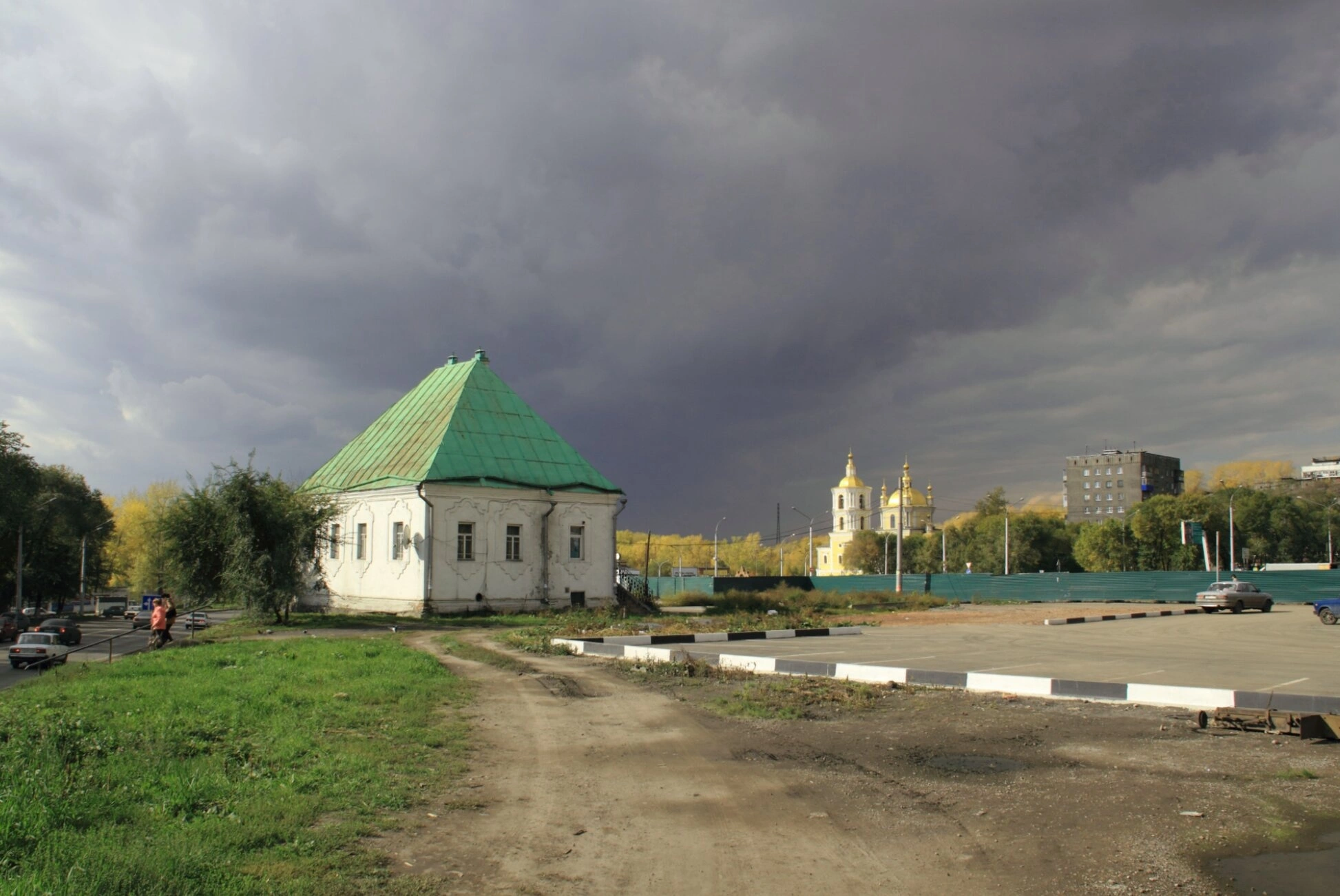 Общая панорама, несмотря на облачную погоду, передаёт уникальное сочетание истории и современности, светской и духовной жизни города. Этот вид открывается с торговой площади, что подчёркивает неразрывную связь хозяйственной деятельности и духовных устремлений, характерную для сибирских городов.