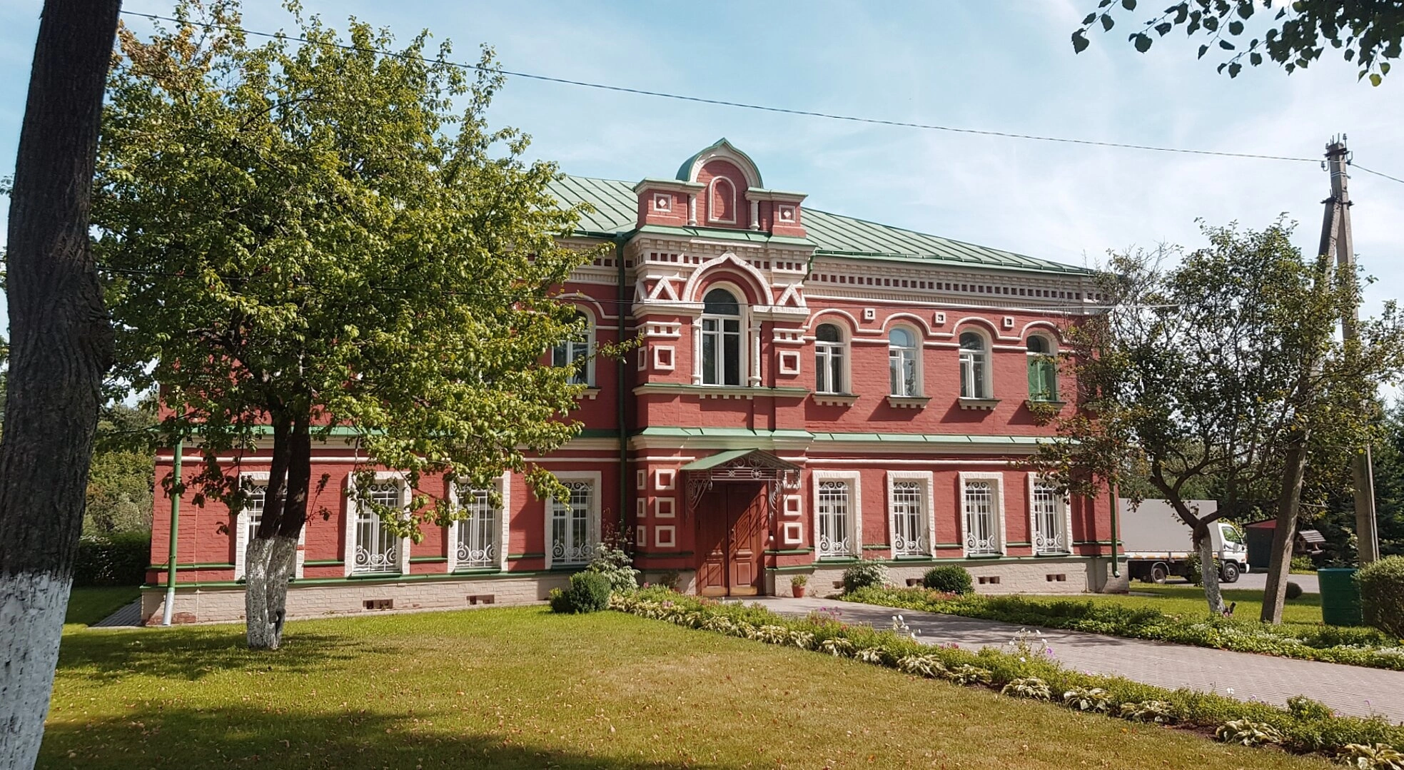 На представленной фотографии запечатлён исторический корпус — дом настоятельницы Свято-Покровского Хотькова ставропигиального женского монастыря, расположенного в городе Хотьково Московской области. Двухэтажное кирпичное здание, возведённое в русском стиле с элементами эклектики, характерными для церковной архитектуры конца XIX столетия, служит важной частью ансамбля одной из древнейших православных обителей России.
