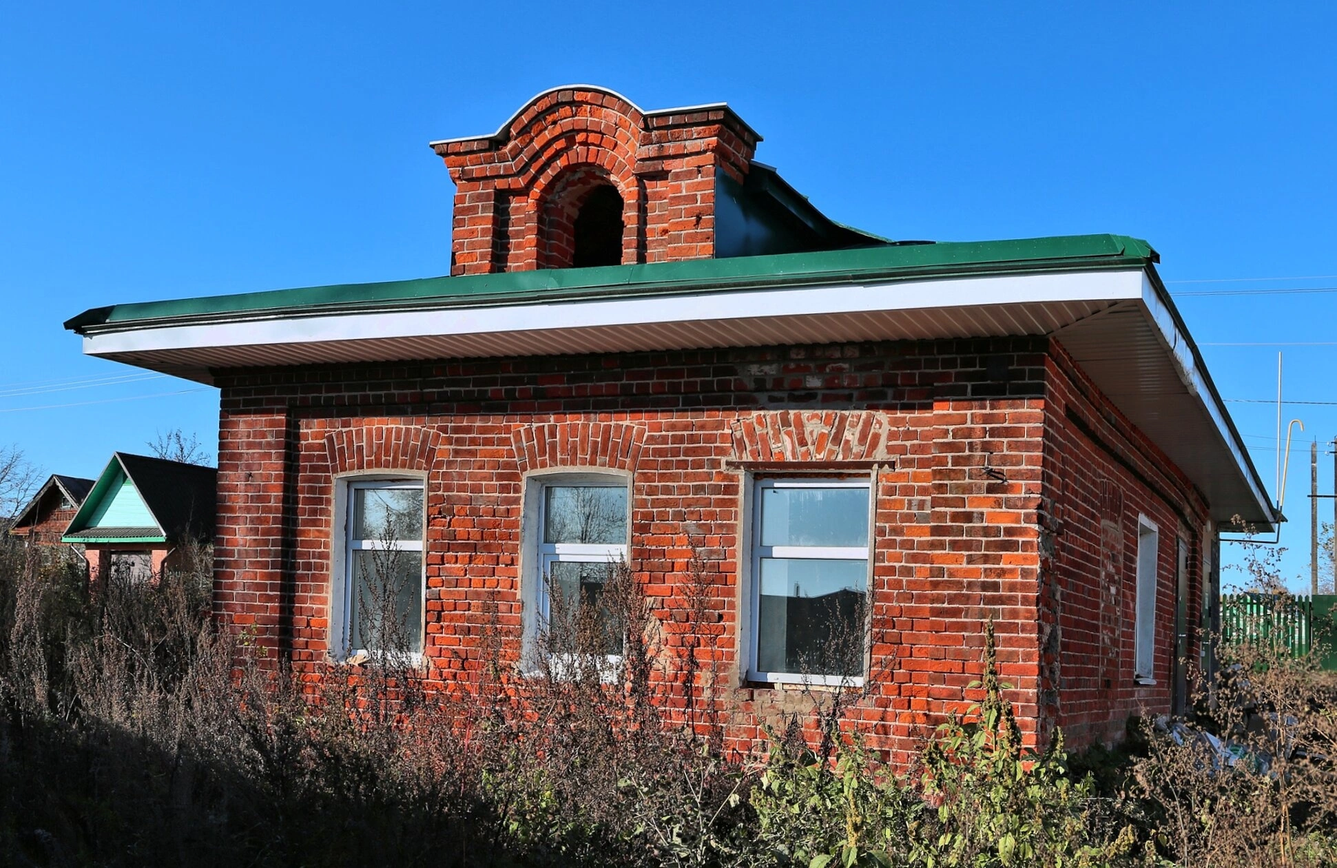 На представленной фотографии запечатлён один из объектов историко-культурного наследия, расположенный в селе Введенье Шуйского района Ивановской области. Снимок демонстрирует кирпичное здание, являющееся частью архитектурного ансамбля местного храмового комплекса. Строение, предположительно, являлось домом причта или церковной лавкой, что было характерно для православных комплексов Российской империи.