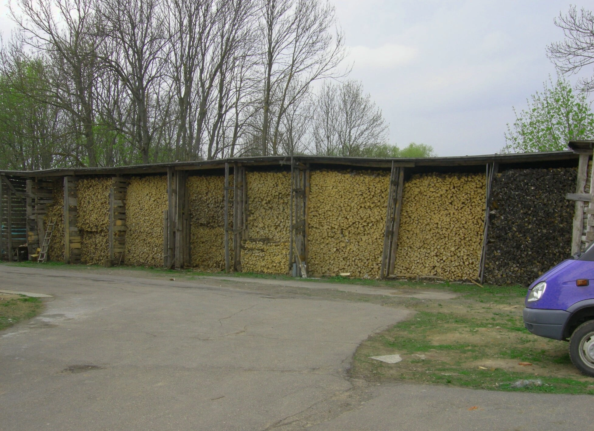 Дровница представляет собой капитальную постройку под общей двускатной крышей, разделённую на несколько секций. Каждая секция аккуратно заполнена сложенными поленьями. Светлый цвет большей части древесины свидетельствует о недавней заготовке, в то время как более тёмные поленья в одной из секций указывают на прошлогодний запас или же на использование другой породы дерева. Подобное бережное и рачительное отношение к хозяйственным ресурсам отражает древние монастырские традиции самообеспечения и трудолюбия.