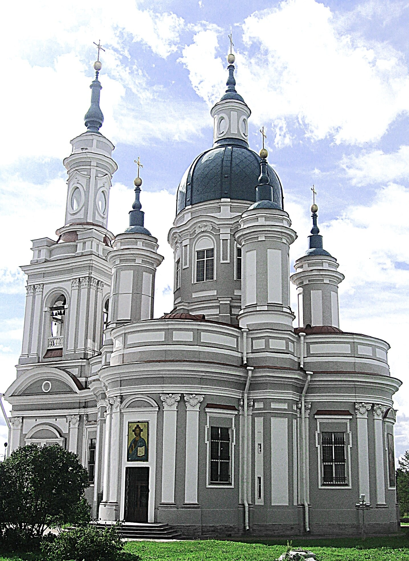 Собор был возведён в 1764–1782 годах по повелению императрицы Екатерины II и по проекту знаменитого придворного зодчего Антонио Ринальди. Храм построен в стиле, переходном от барокко к классицизму, и обладает уникальной для русского зодчества архитектурой. Центральный объём увенчан мощным куполом на высоком барабане, а стройная трёхъярусная колокольня завершает композицию.