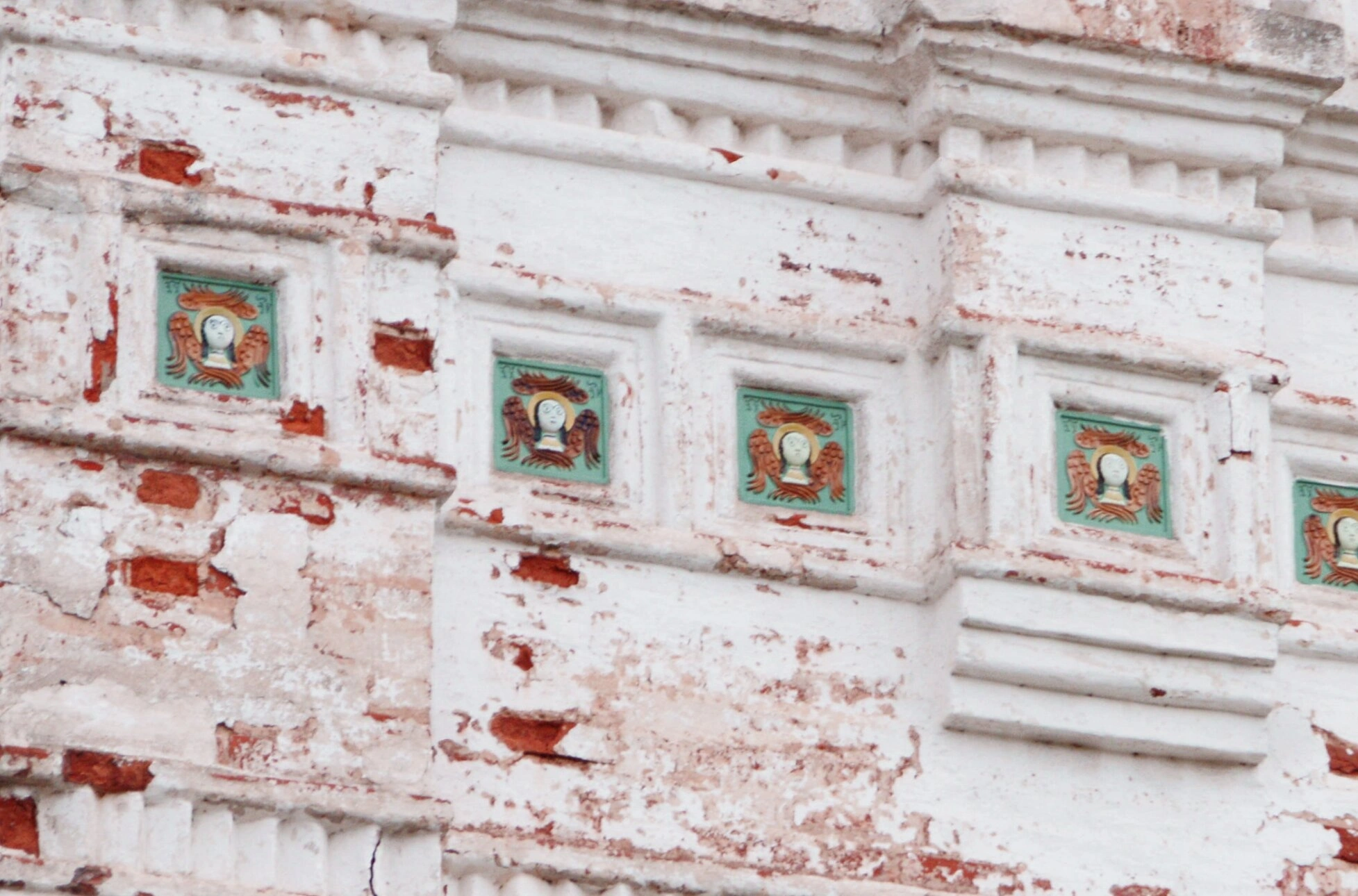 Эти керамиды, обрамлённые бирюзовыми рамами, являются одной из главных архитектурных реликвий храма. На них в традиционной иконописной манере написаны лики святых и ангелов в сияющих нимбах. Подобный изразцовый декор был широко распространён в русском храмовом строительстве XVII столетия и символизировал Небесный Иерусалим.