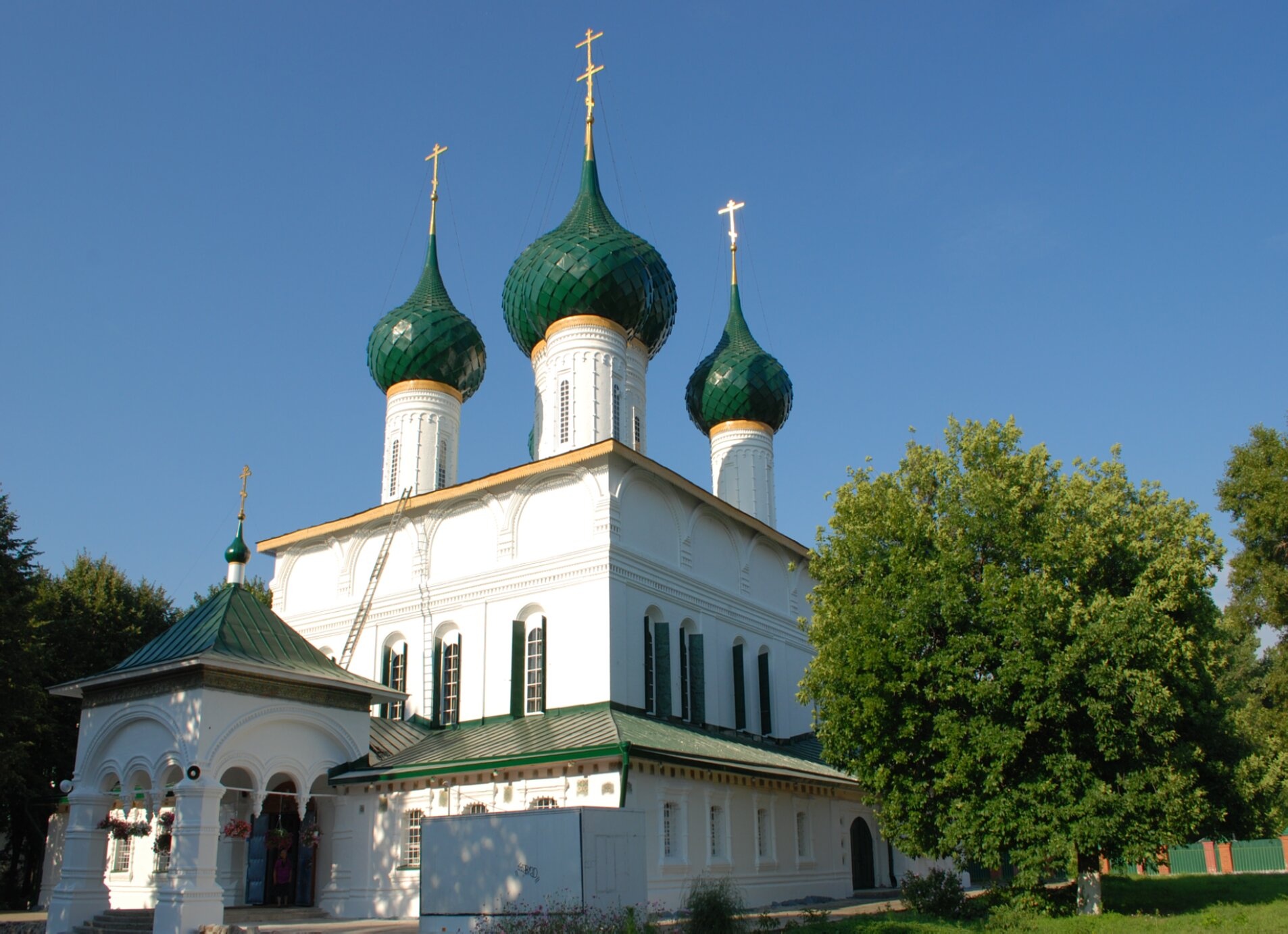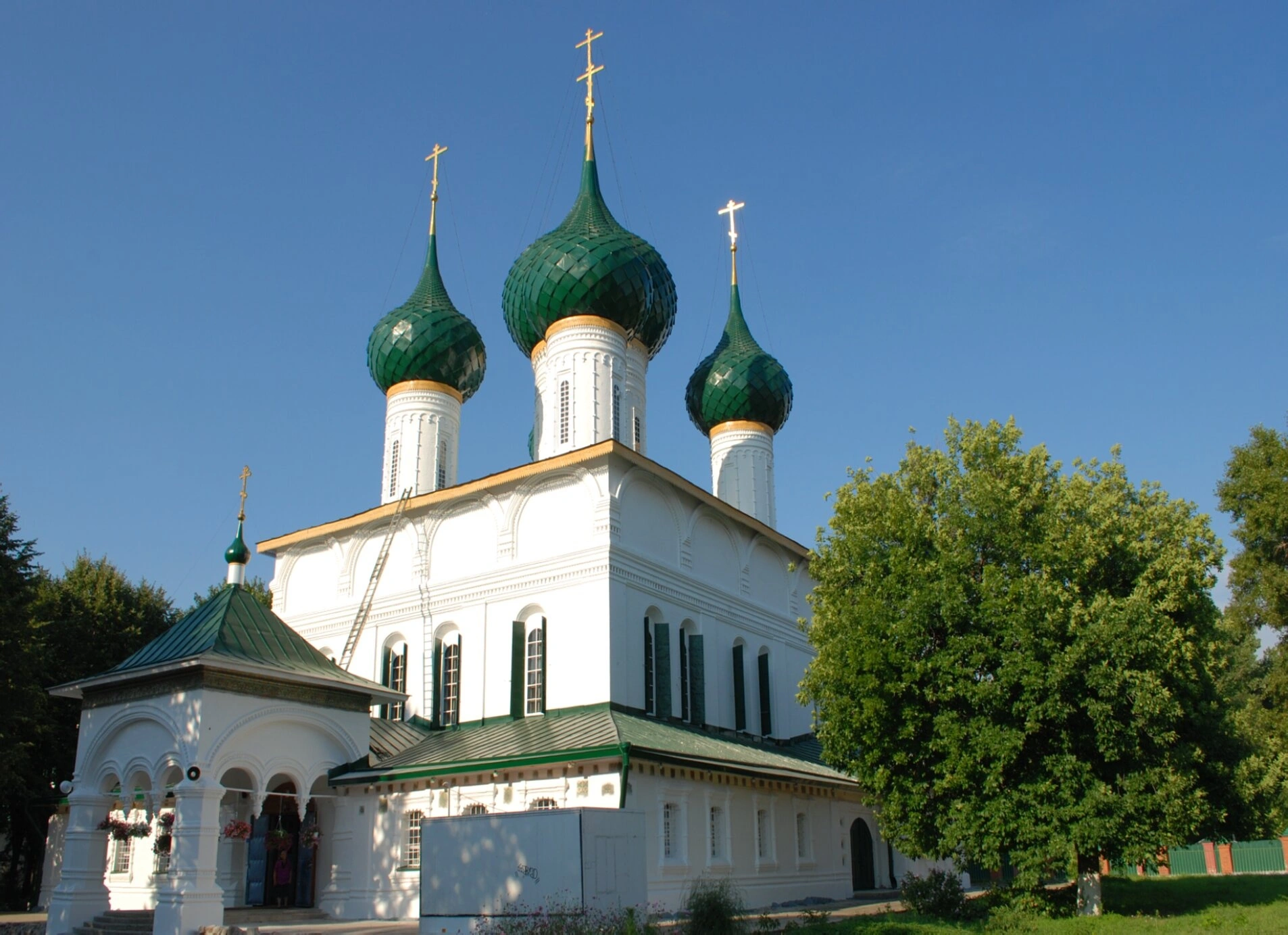 На представленной фотографии запечатлена величественная Федоровская церковь, расположенная в историческом центре Ярославля. Этот православный храм, освященный в честь Феодоровской иконы Божией Матери, является выдающимся памятником русской церковной архитектуры последней четверти XVII века.