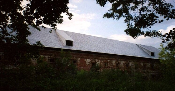 На представленной фотографии запечатлено одно из хозяйственных строений Феодоровского женского монастыря, расположенного в древнем граде Переславле-Залесском. Кирпичное здание, предположительно амбар или братский корпус, демонстрирует характерную для монастырских подворий архитектуру XVII-XVIII столетий. Несмотря на почтенный возраст класки, свидетельствующей о многовековой истории святой обители, строение содержится в должном порядке, о чём говорит новая светлая кровля, бережно укрывающая его от непогод.