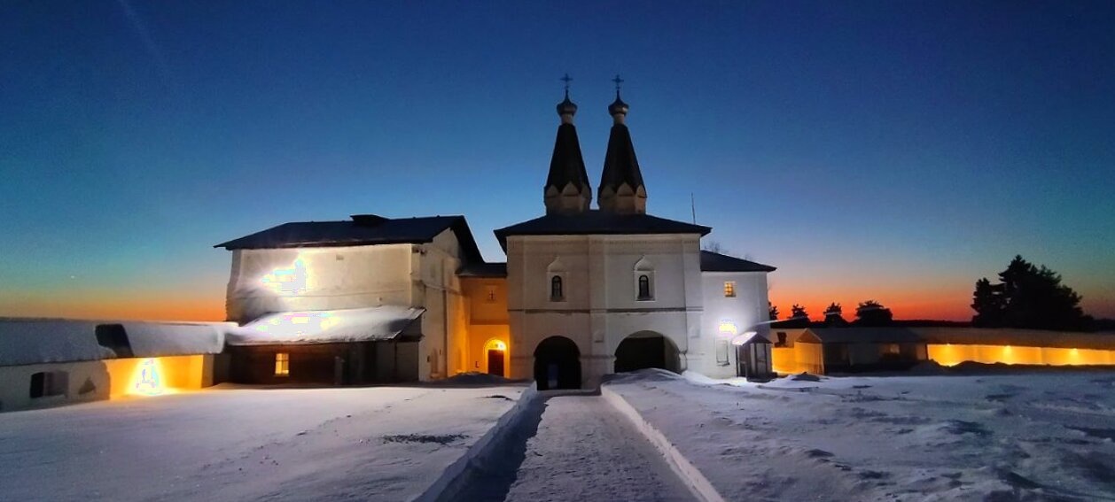 Ферапонтов Белозерский монастырь в зимних сумерках