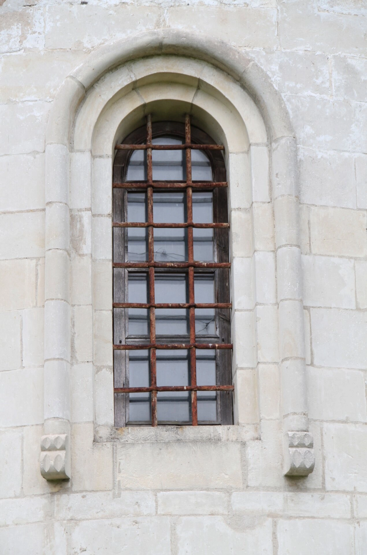 На снимке храмовой постройки, выполненной из белого камня – местного известняка. В кадр попадает часть восьмерика, увенчанного могучим шатром, с арочным оконным проемом, украшенным кованой решеткой. Ниже окна проходят горизонтальные рельефные пояса, характерные для отечественного церковного зодчества той эпохи. Выше оконного проема размещен декоративный фриз с геометрическим орнаментом, являющийся переходным элементом к основанию шатра.