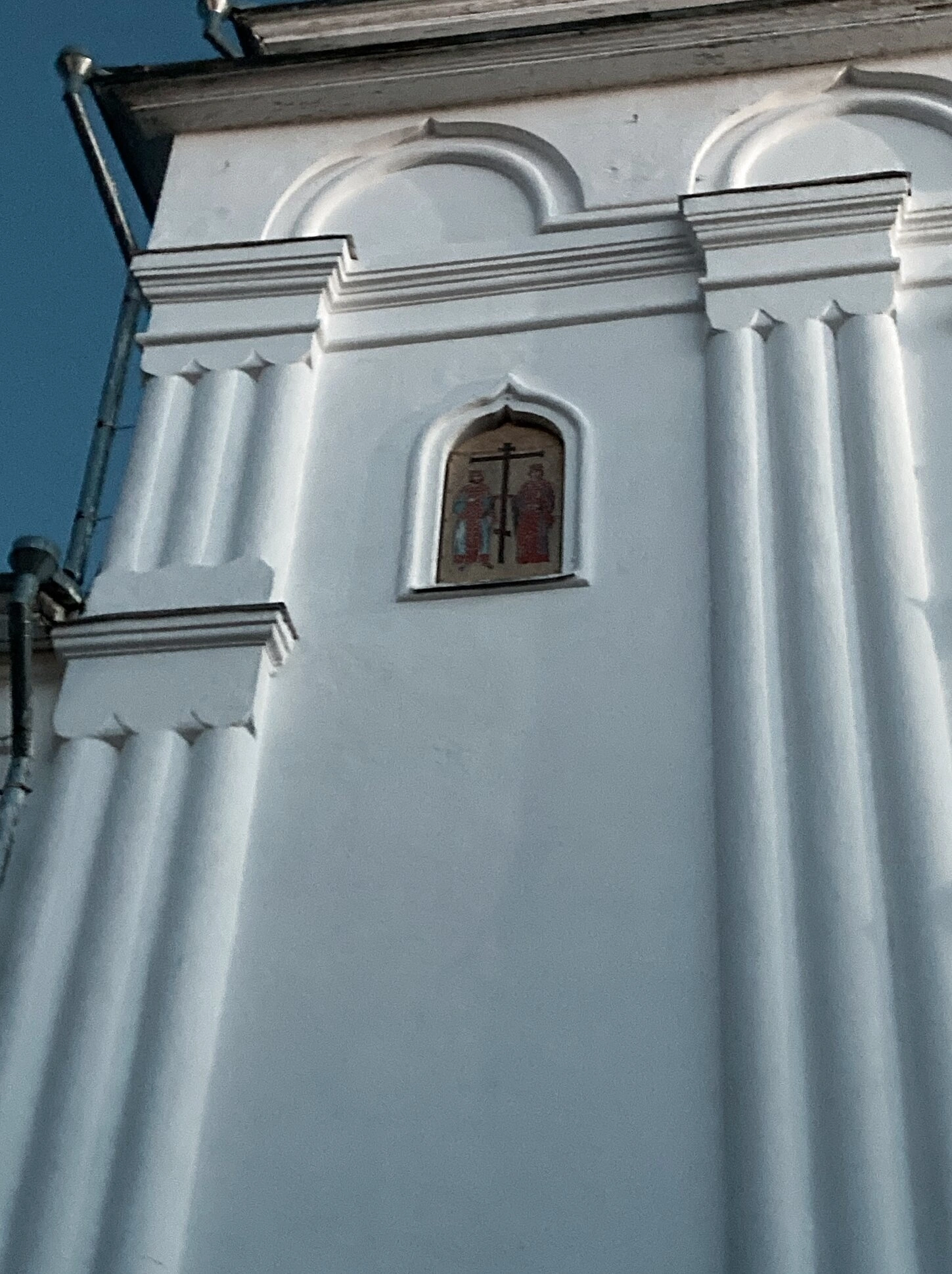 - Фрагмент фасада церкви Константина и Елены с иконой в нише