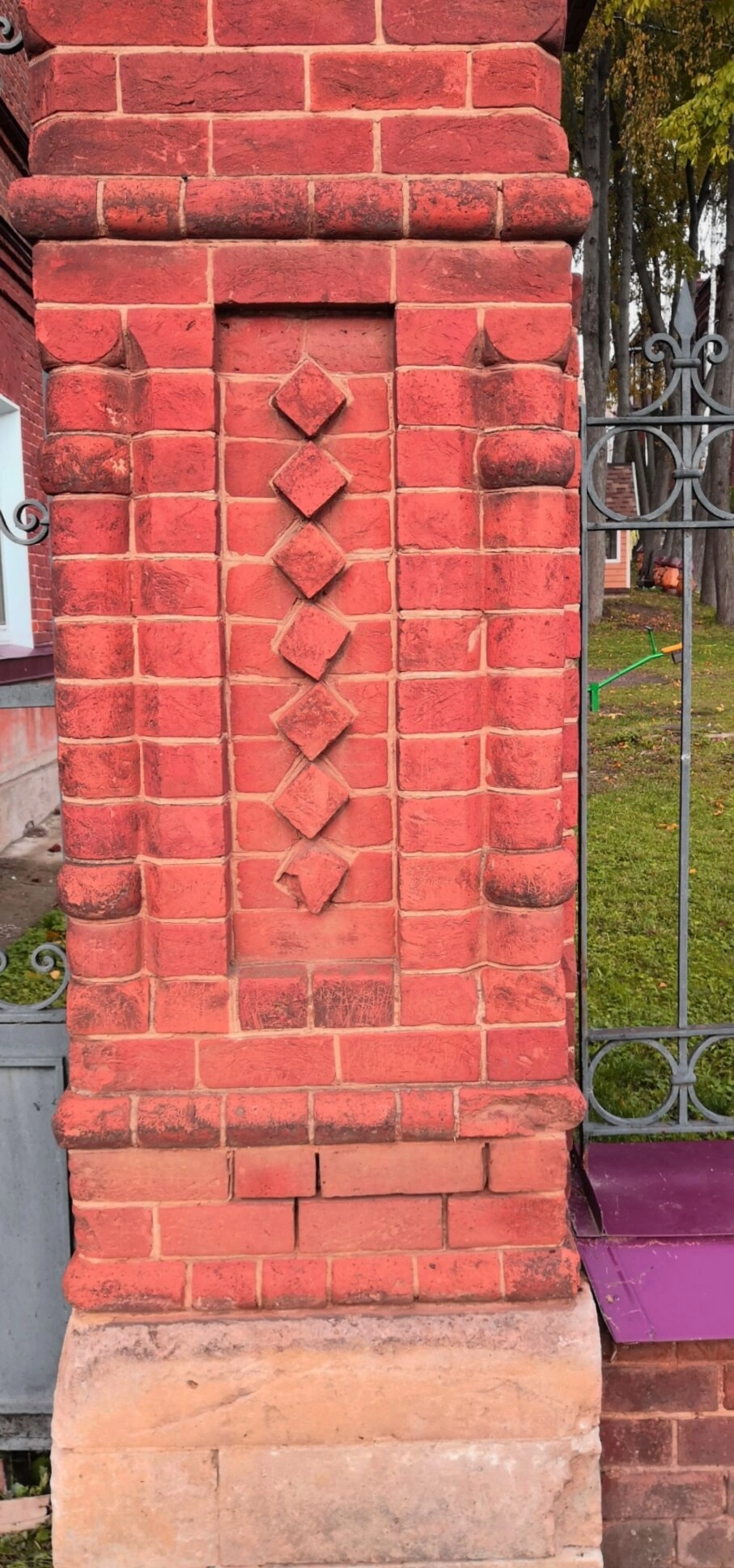 Фрагмент кирпичного столба ограды Церкви Рождества Богородицы в Некрасовском