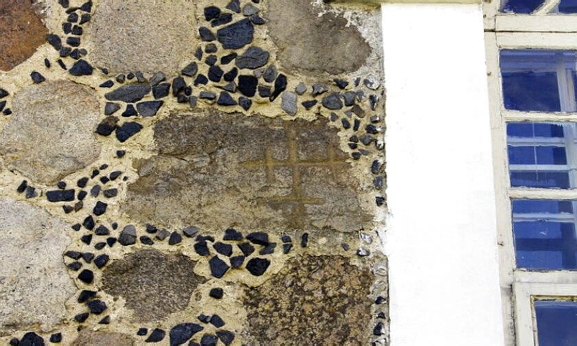 В центре внимания участок стены, где была проведена реставрация. Видны следы укрепляющей арматуры, образующие крестообразный узор, что символично для дома Божьего и говорит о заботе верующих о сохранении святыни. С правой стороны изображения находится часть оконного проема, обрамленного светлым наличником. Окно состоит из множества небольших квадратных стекол, разделенных тонкими переплетами, которые создают ощущение легкости и устремленности ввысь.
