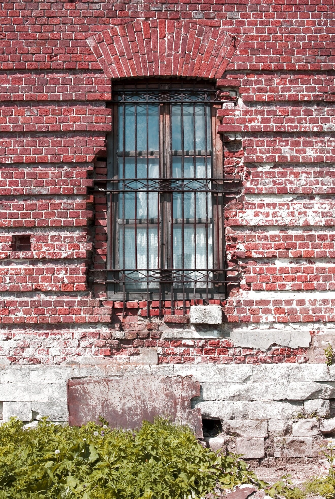 В центре композиции находится арочное окно, традиционной для православных храмов формы, обрамленное деревянной рамой и защищенное кованой металлической решеткой. Над окном читается конструктивный элемент — разгрузочная кирпичная арка, предназначенная для перераспределения нагрузки и являющаяся признаком строительного мастерства ушедшей эпохи.