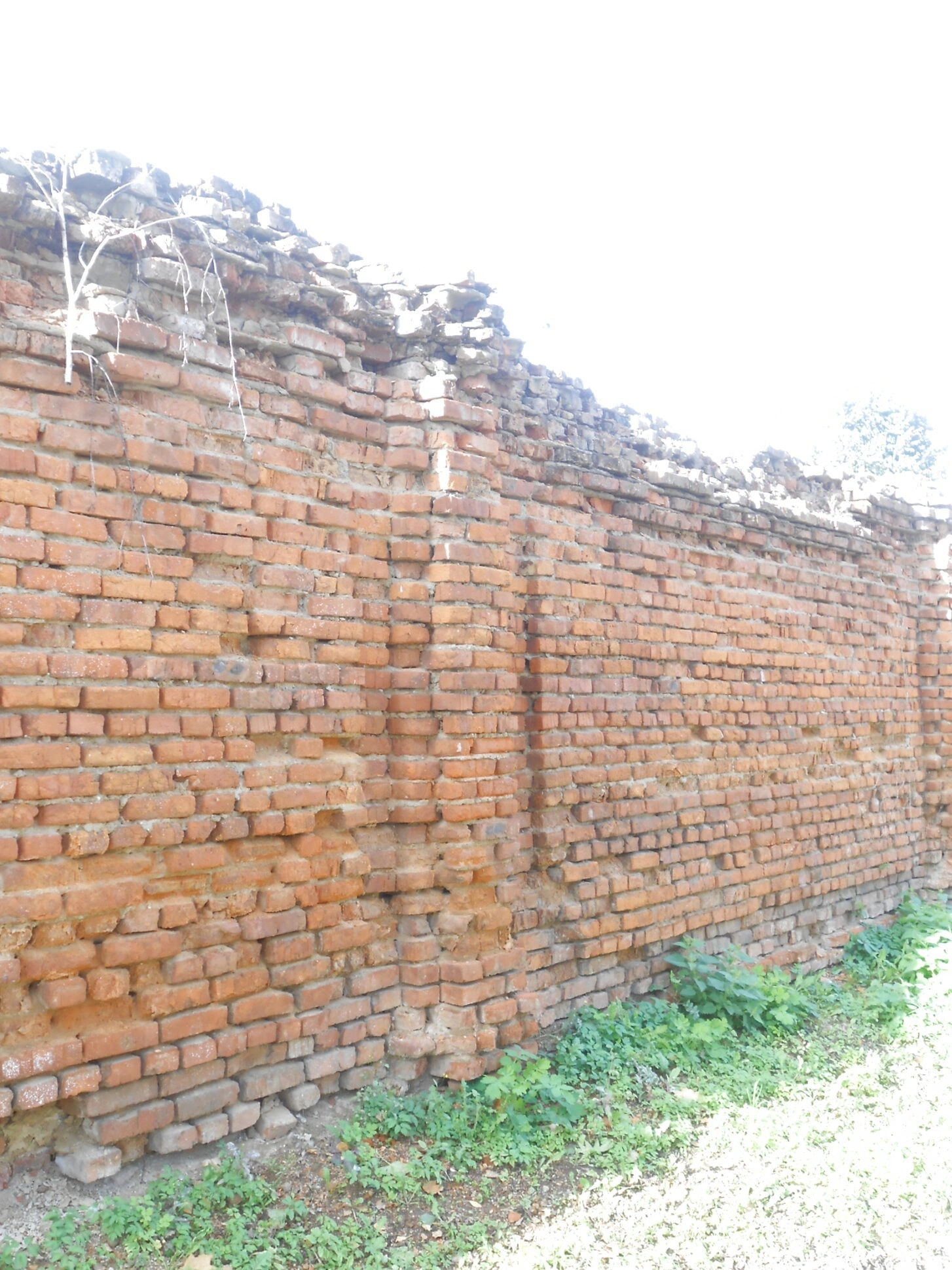 Кирпичная кладка, изображённая на снимке, демонстрирует характерный для своего времени способ строительства. Ныне она пребывает в ветхом состоянии: видны следы разрушительного действия времени, неровные швы и повреждения верхней части стены. Сквозь кирпичи местами прорастает растительность, а у основания стены лепится мелкая трава, что символизирует непрерывную борьбу тленного мира и вечности.