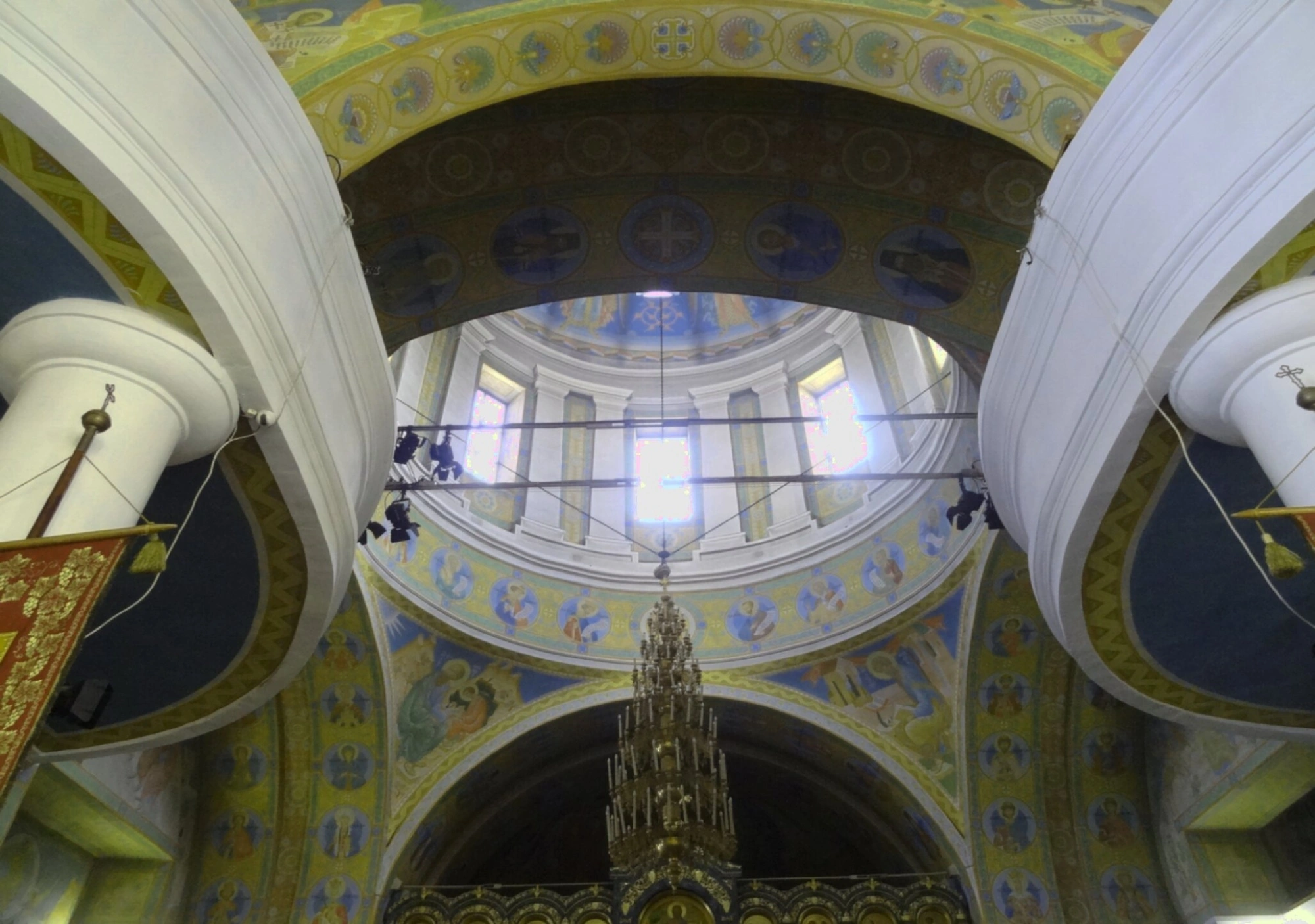 На представленной фотографии запечатлена фреска из Свято-Троицкого кафедрального собора города Екатеринбурга, расположенного по координатам 56.82733000, 60.61448000. Храмовый комплекс, к которому относится данная роспись, является выдающимся памятником церковной архитектуры и духовным центром Урала.