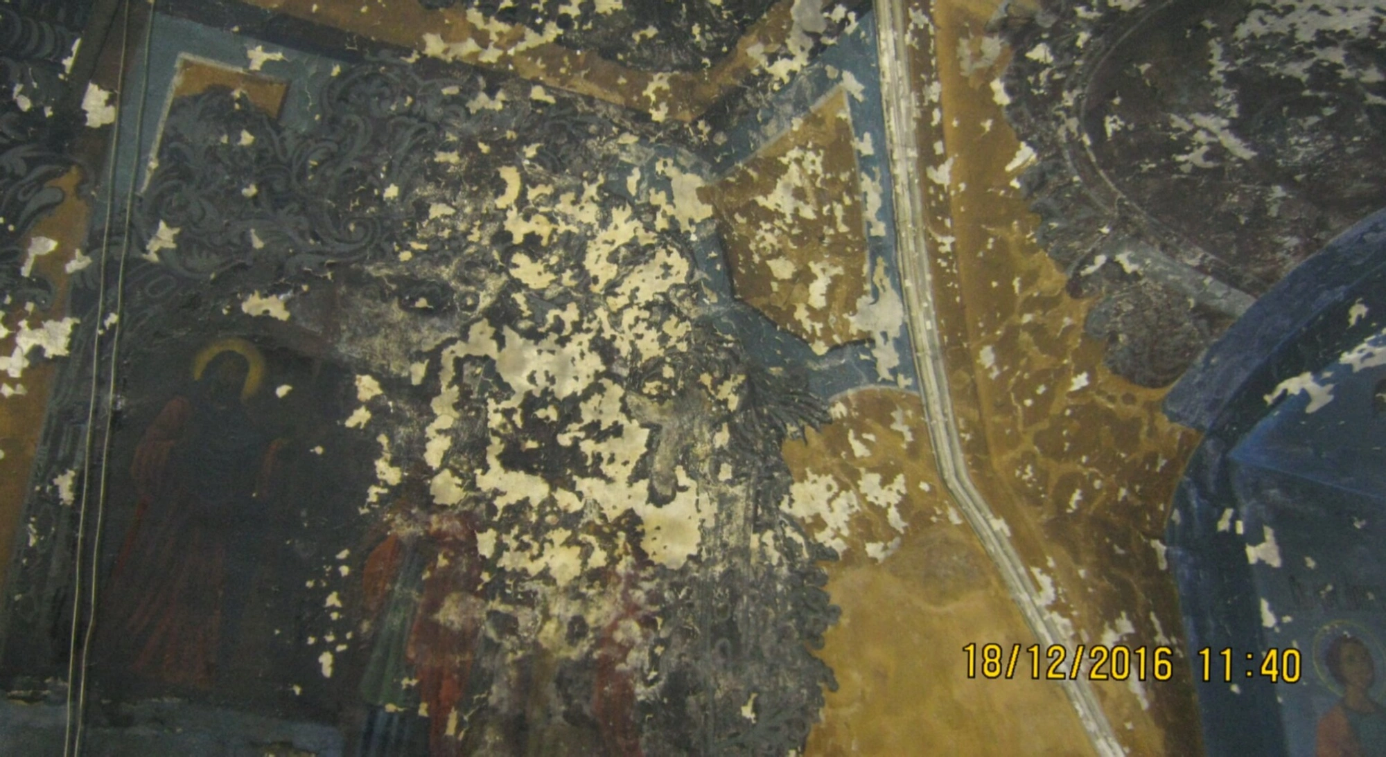 Сохранение и реставрация уникальных фресок являются важнейшей задачей для современного православного сообщества и специалистов по сохранению культурного наследия. Каждый фрагмент росписи представляет не только художественную, но и духовную ценность, являясь свидетельством глубокой веры и мастерства наших предков. Фотография датирована 18 декабря 2016 года и служит документальным свидетельством состояния росписей в начале XXI века.