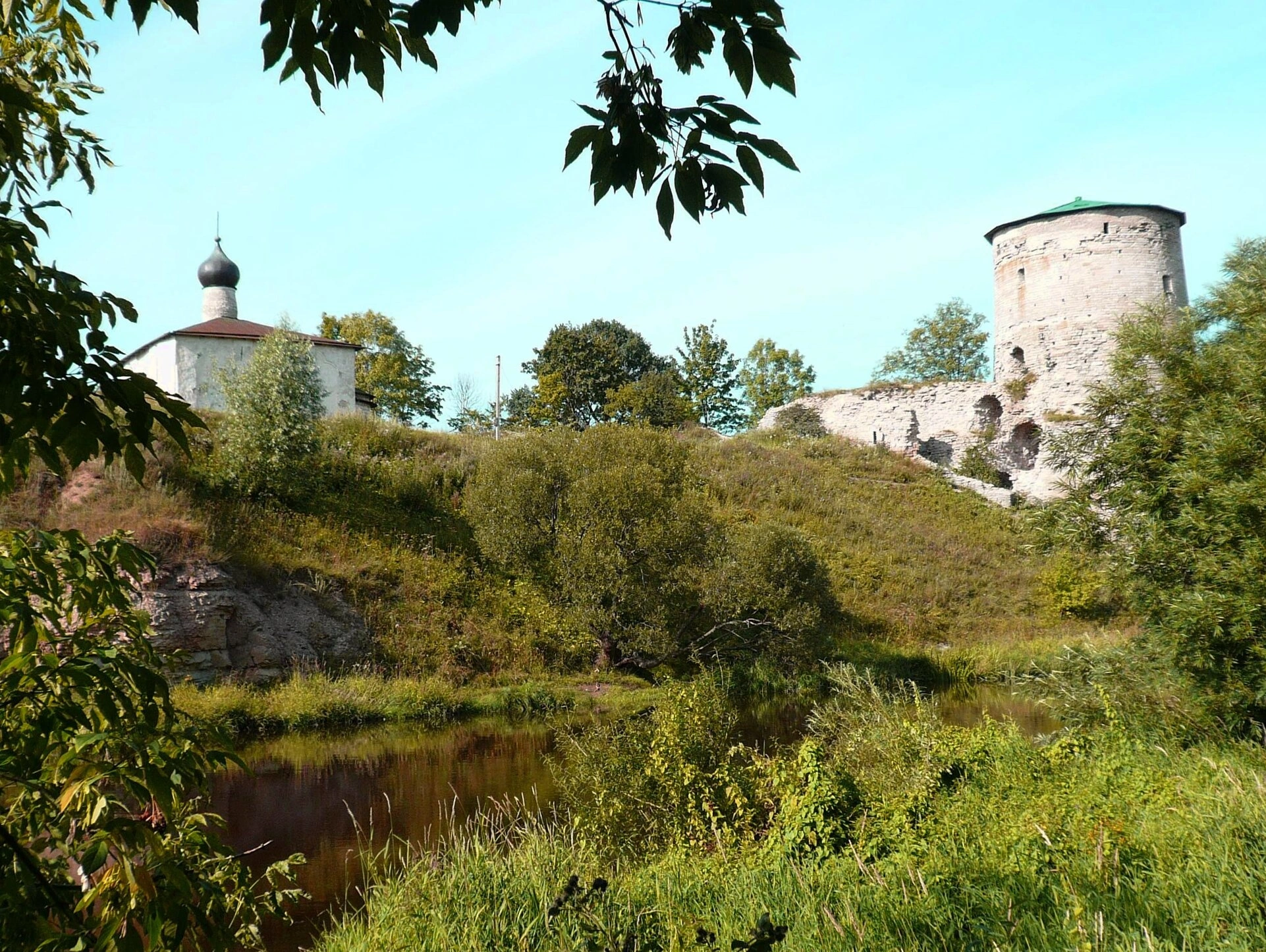Гремячая башня и храм Космы и Дамиана на Гремячей горе в Пскове