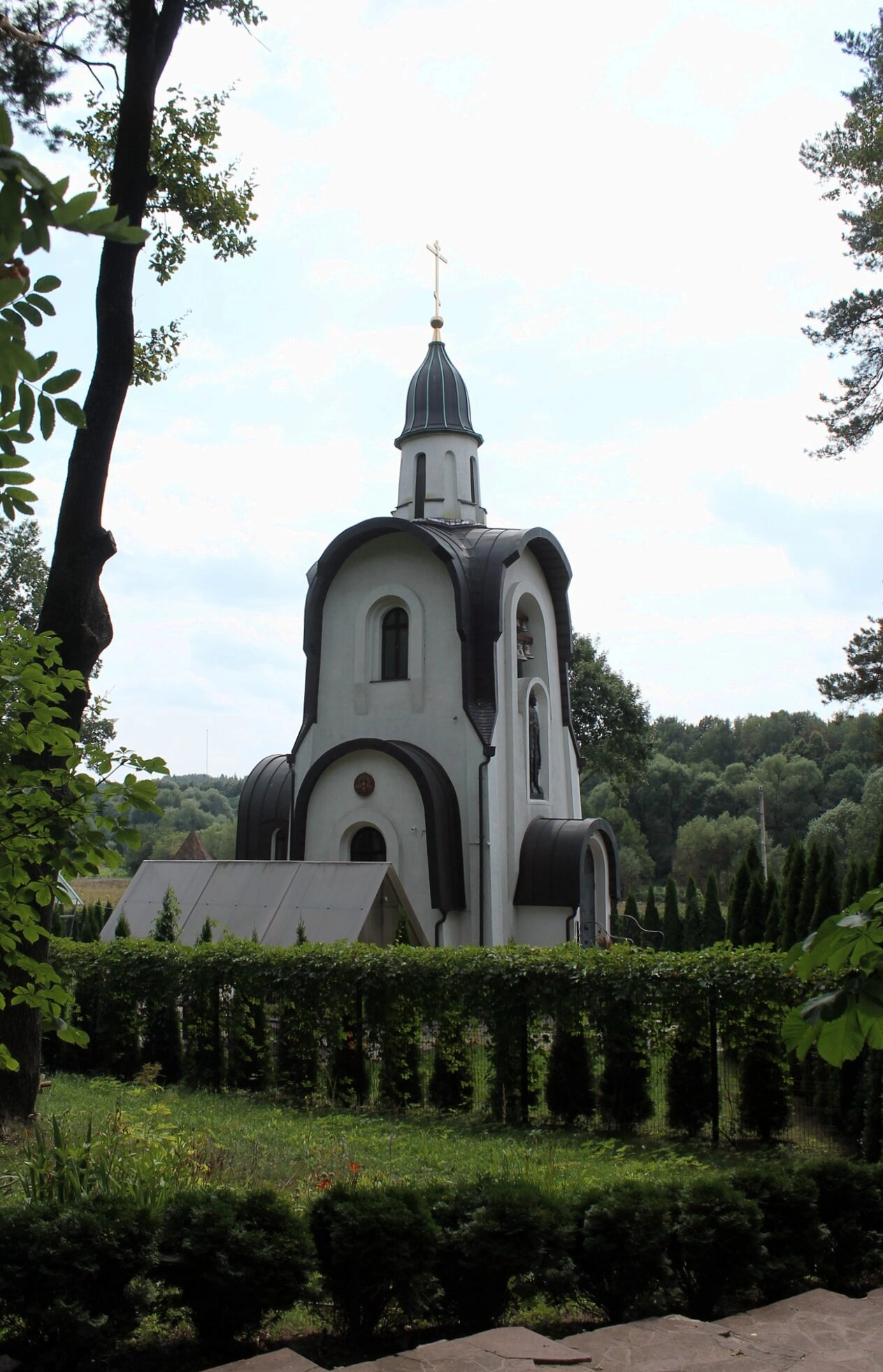 Территория вокруг храма содержится в образцовом порядке: подстриженные кустарники, ухоженные деревья и изумрудный газон создают атмосферу благолепия и гармонии. Небольшое по размерам здание органично вписано в природный ландшафт, демонстрируя единство творения Божия и человеческого мастерства.