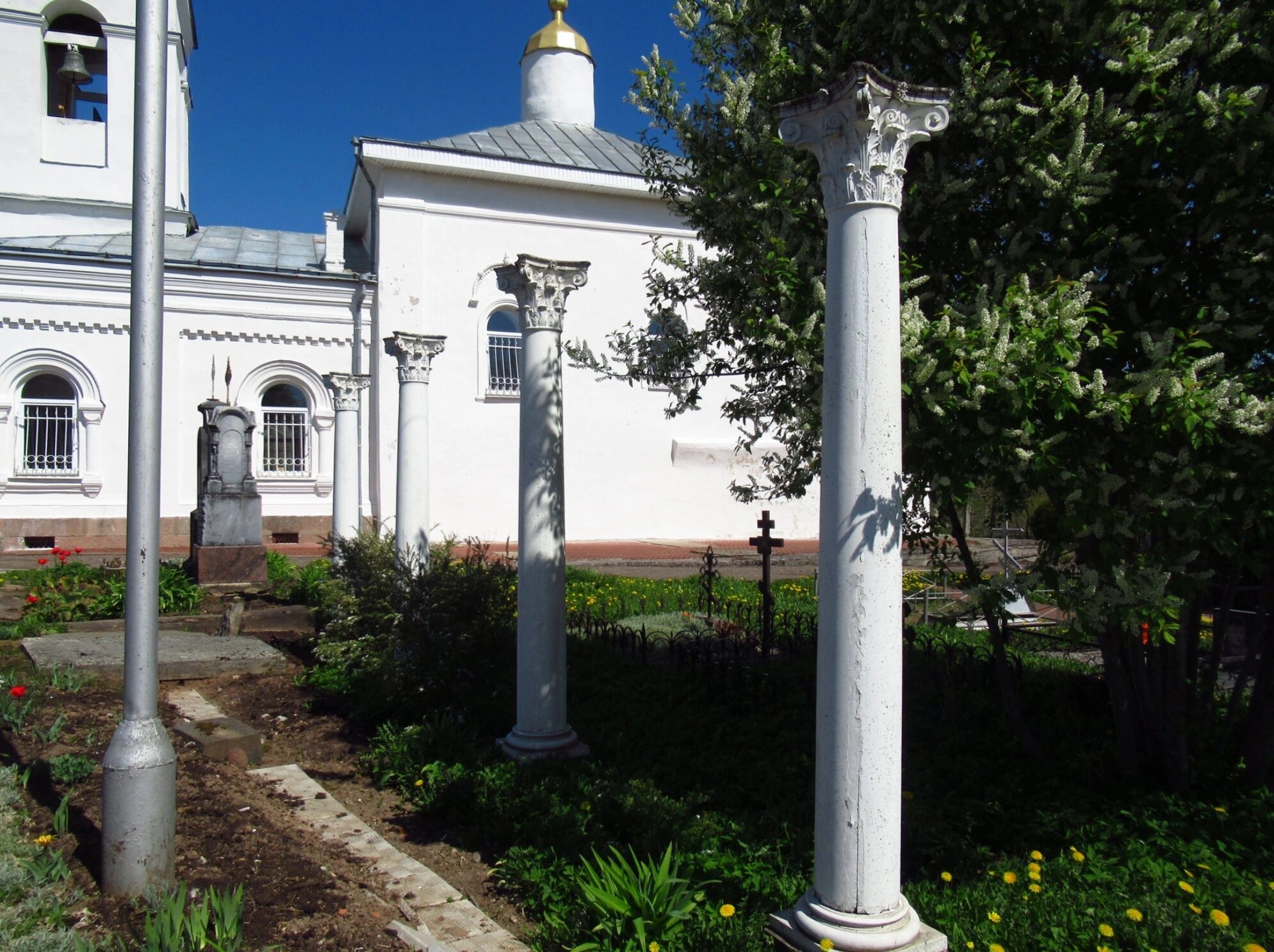 Декоративные колонны, установленные на территории, добавляют архитектурному ансамблю особую торжественность и величие. Вся композиция снимка пронизана светом и благодатью, передавая не только внешнюю красоту святого места, но и его глубокое молитвенное назначение. Этот храм является духовной твердыней и центром притяжения для верующих всего края.