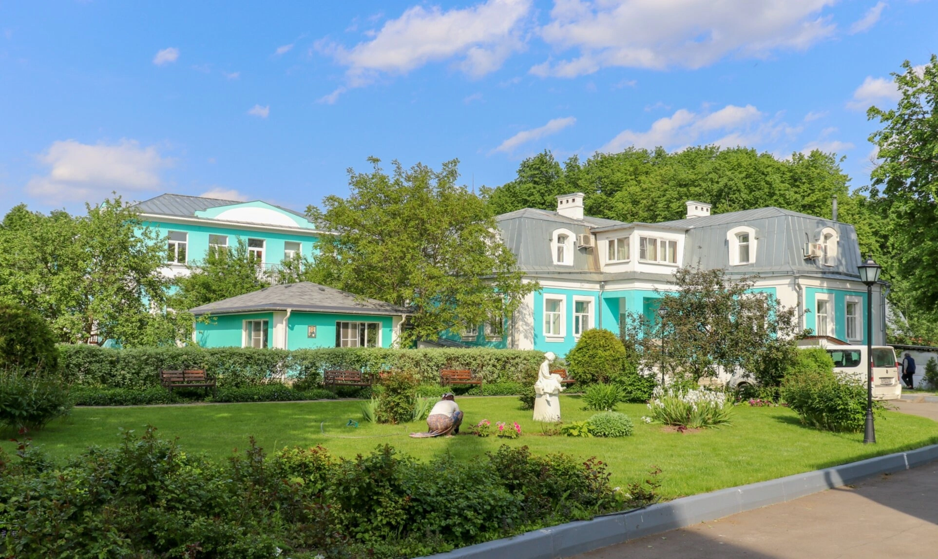 На представленной фотографии запечатлён величественный храм во имя святого Архистратига Михаила, расположенный в исторической усадьбе Летово Московской области. Белоснежный храм с бирюзовыми кровлями и златоглавыми куполами является духовным центром всего архитектурного ансамбля.