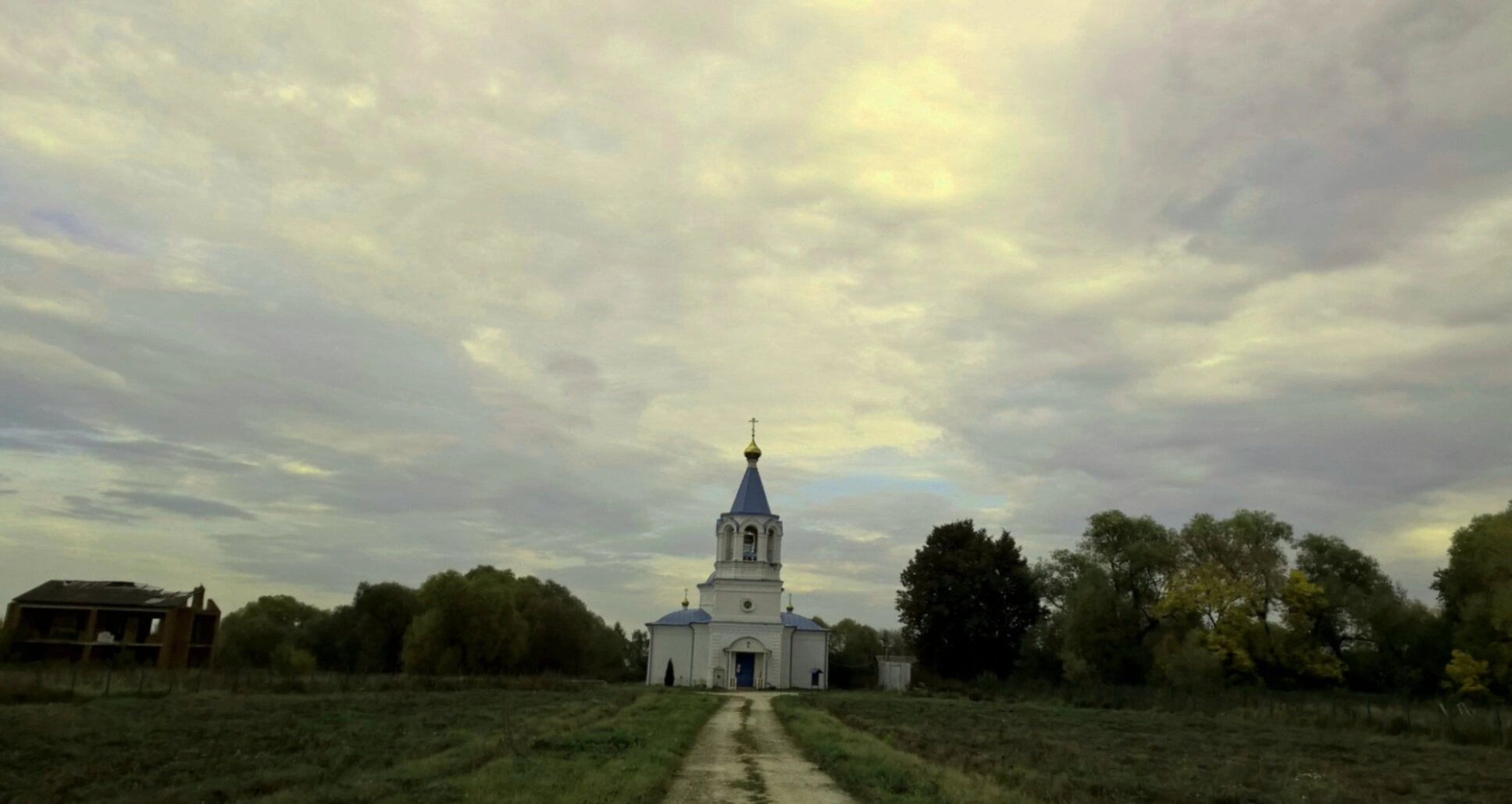 Слева от основного здания угадываются очертания еще одного строения, вероятно, церковной сторожки или дома причта. Общий вид храма, стоящего в поле, символизирует духовную твердыню, неколебимую веру и надежду, что особенно ощущается в уединении сельской местности. Данная фотография не только передает архитектурные особенности памятника, но и запечатлевает его глубокое молитвенное настроение, приглашая зрителя к размышлению о вечном.