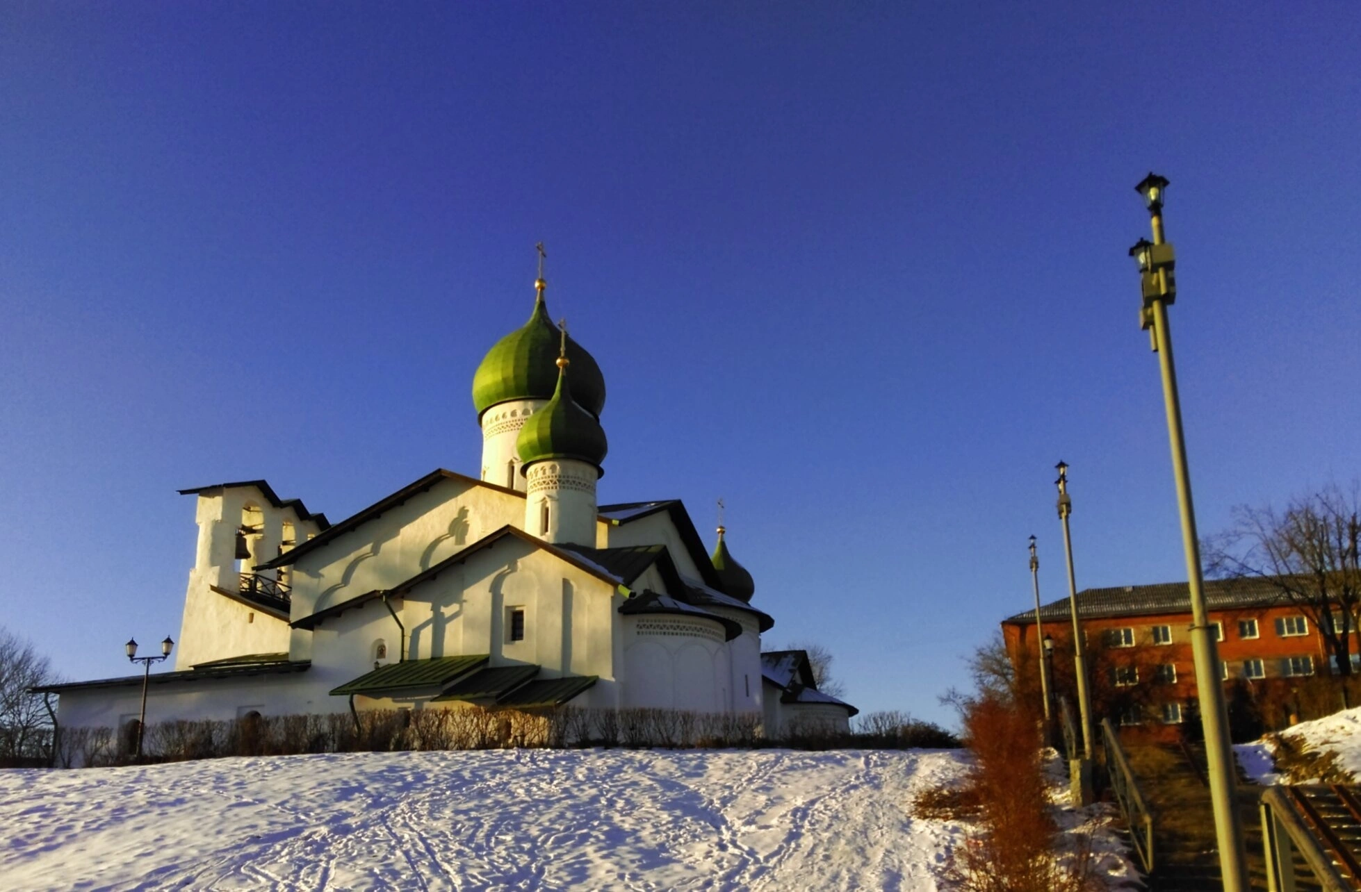 - Храм Богоявления с Запсковья в Пскове — зимний пейзаж