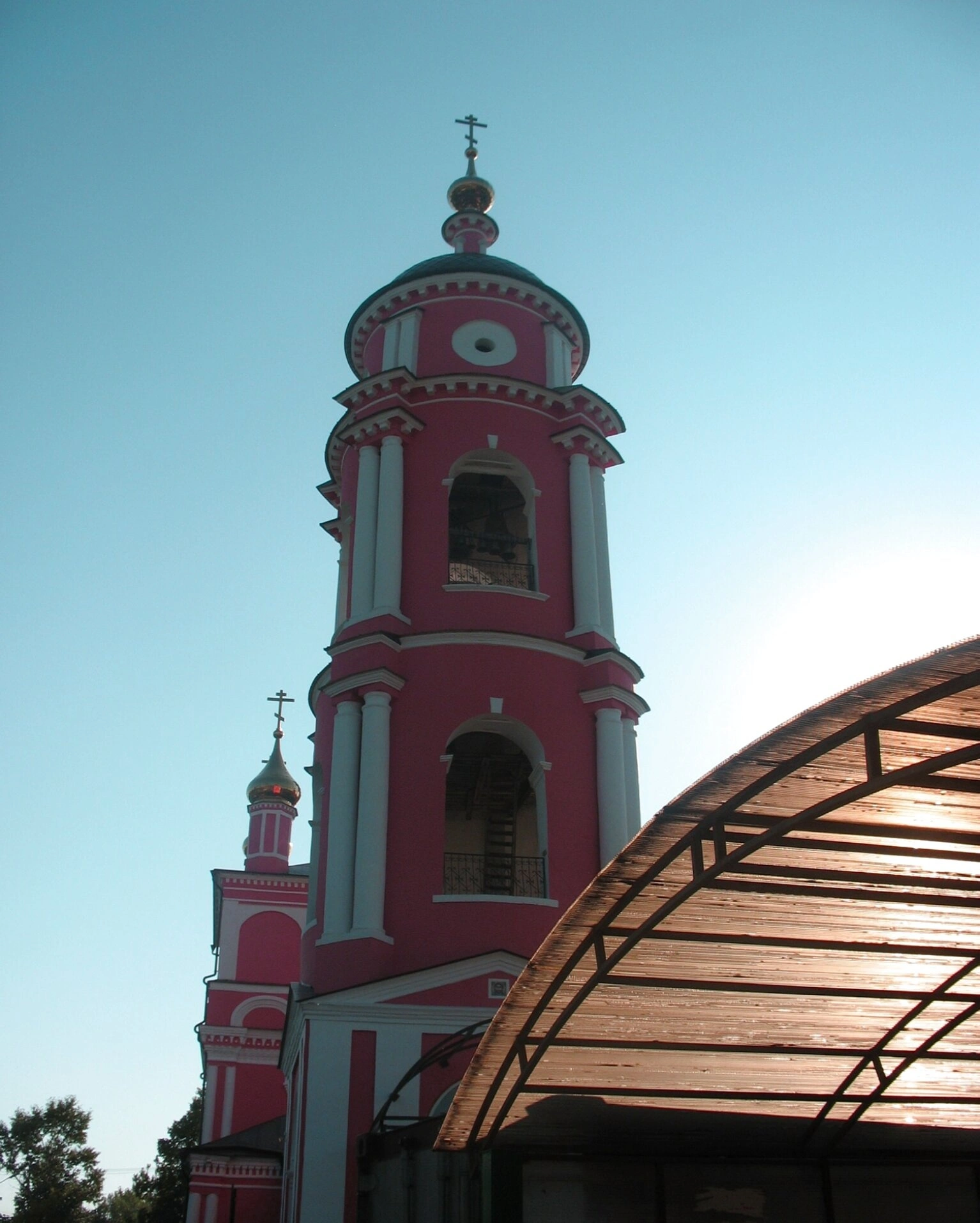 На представленной фотографии запечатлена колокольня храма во имя святых благоверных князей Бориса и Глеба в древнем городе Боровске Калужской области. Данная колокольня, возведённая в 1819 году, является архитектурной доминантой и неотъемлемой частью исторического облика города.