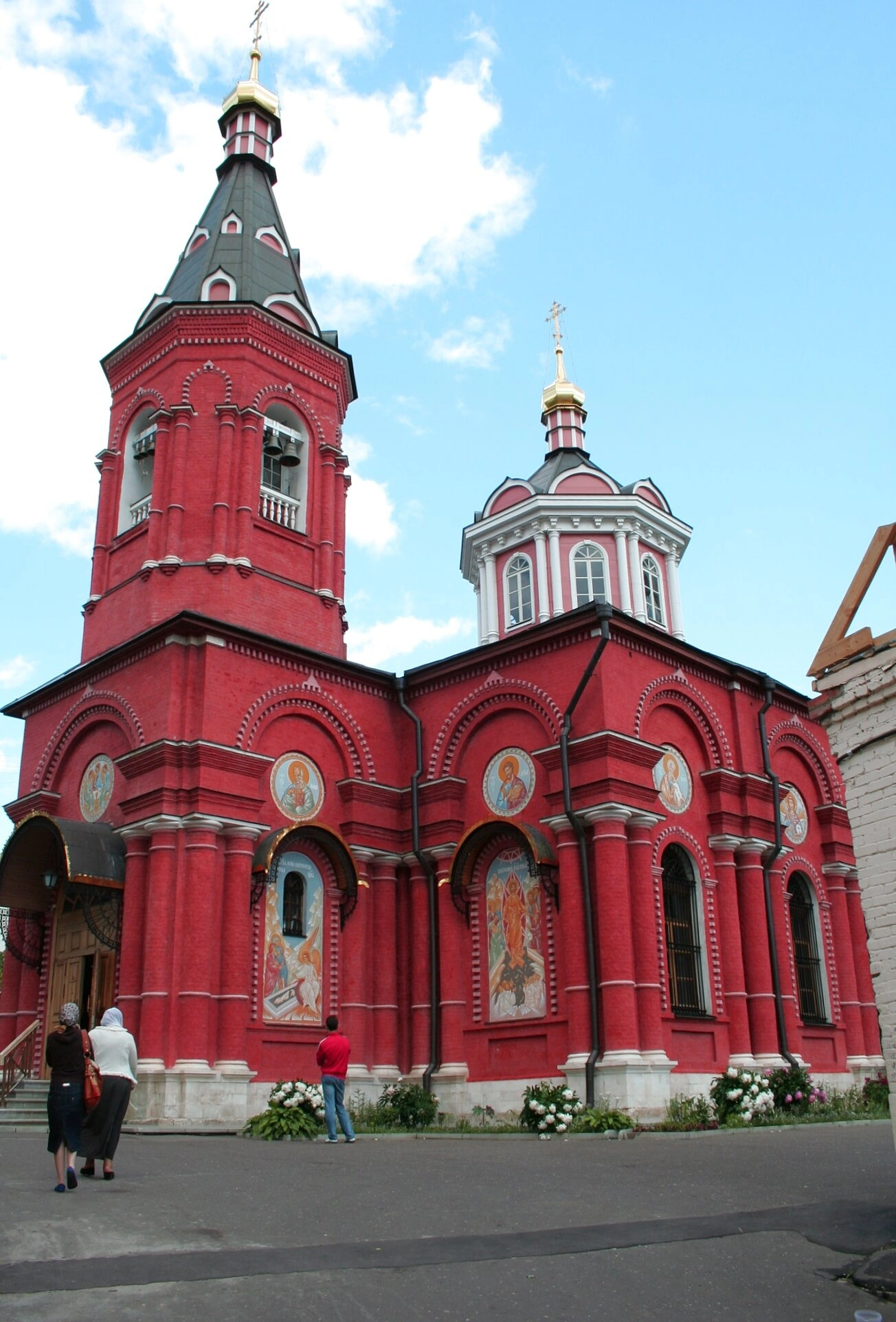 На фотографии запечатлён храм в честь святых благоверных князей Бориса и Глеба в Дегунине. Церковь, выстроенная из ярко-красного кирпича, представляет собой образец русской архитектуры второй половины XIX века. Слева возвышается стройная колокольня, увенчанная шатром с золотым крестом. Основной объём храма завершается белым восьмигранным барабаном, на котором установлен купол с таким же золочёным крестом.