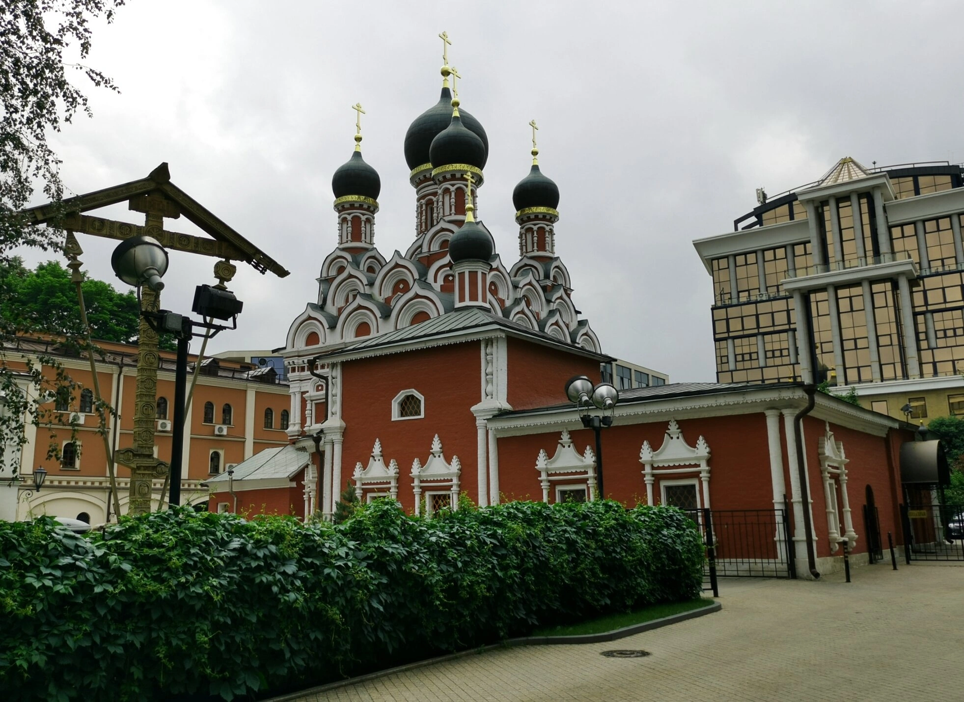 На представленной фотографии запечатлён храм великомученика Георгия Победоносца, что в Ендове, который также является подворьем Спасо-Преображенского Соловецкого ставропигиального мужского монастыря. Этот православный храм с богатой историей расположен в историческом центре Москвы, на Садовнической улице.