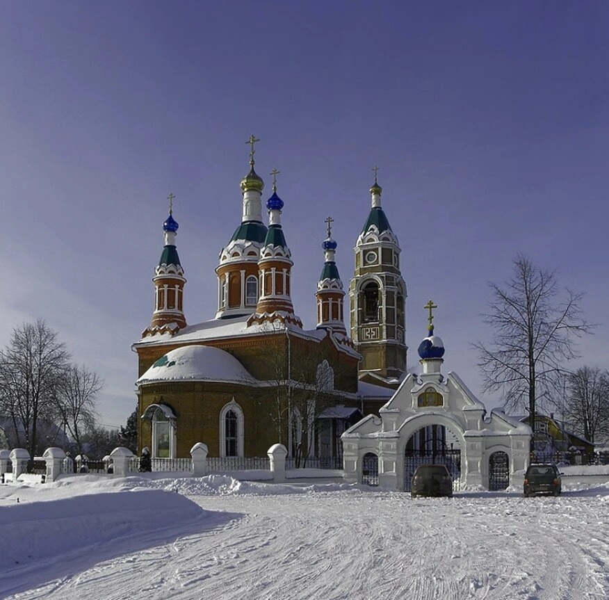 На представленной фотографии запечатлён храм великомученика Георгия Победоносца, расположенный в селе Игнатьево Орехово-Зуевского городского округа Московской области. Святыня изображена в зимнее время, укрытая снежным покровом, что придаёт ей особую благоговейную красоту и величие.