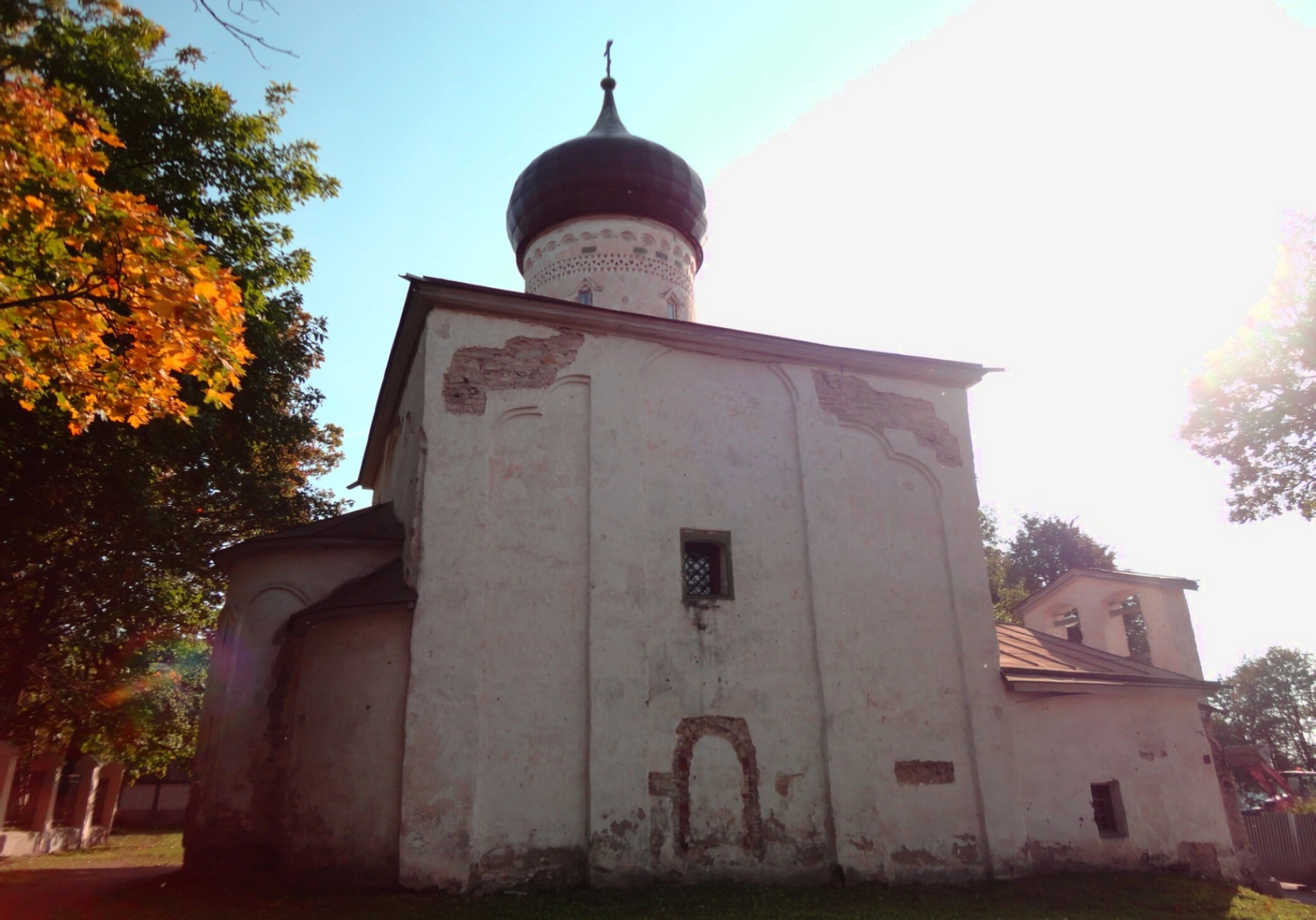 История храма неразрывно связана с историей Псковской земли. Он пережил множество войн и осад, о чём свидетельствуют следы времени на его беленых стенах. Несмотря на испытания, его внешний облик сохранил свою первозданную красоту и величие. Окружённый зеленью деревьев, которые особенно живописны в золоте осенней поры, храм представляет собой гармоничное единство творения Божиего и человеческого гения, освящённого молитвой.