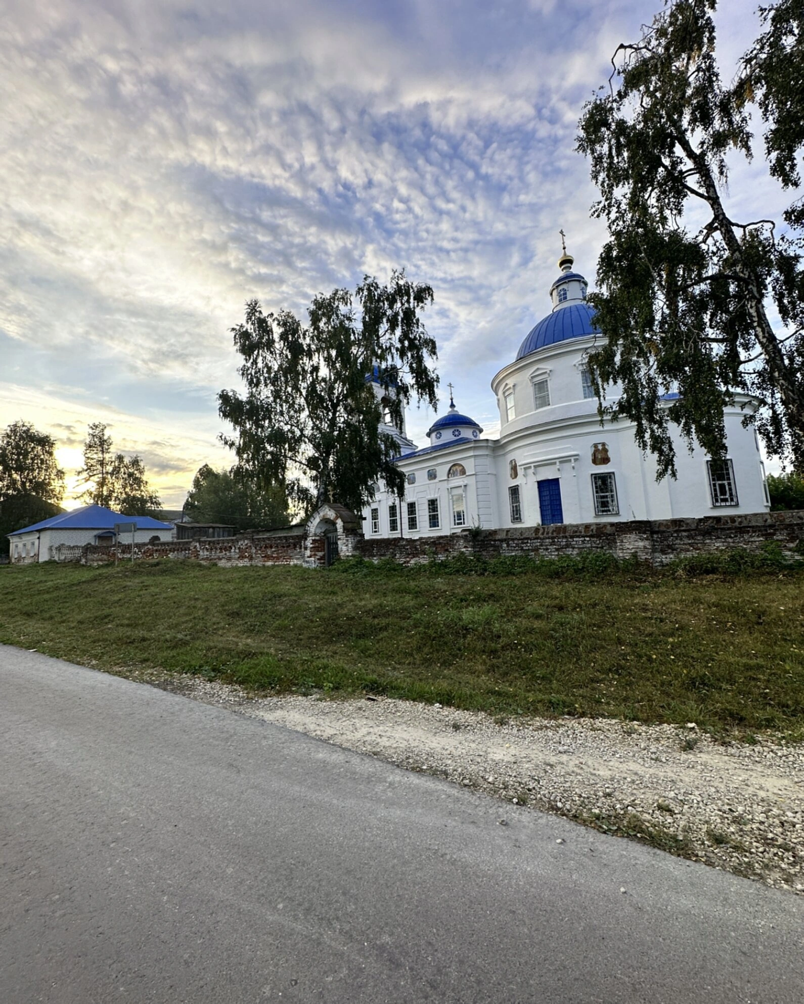 На переднем плане фотографии видна подъездная дорога к храму, символизирующая путь духовного восхождения к Богу. Окружающие церковь деревья создают естественное обрамление, подчёркивая гармонию божественного творения и человеческого мастерства, направленного на прославление Творца.