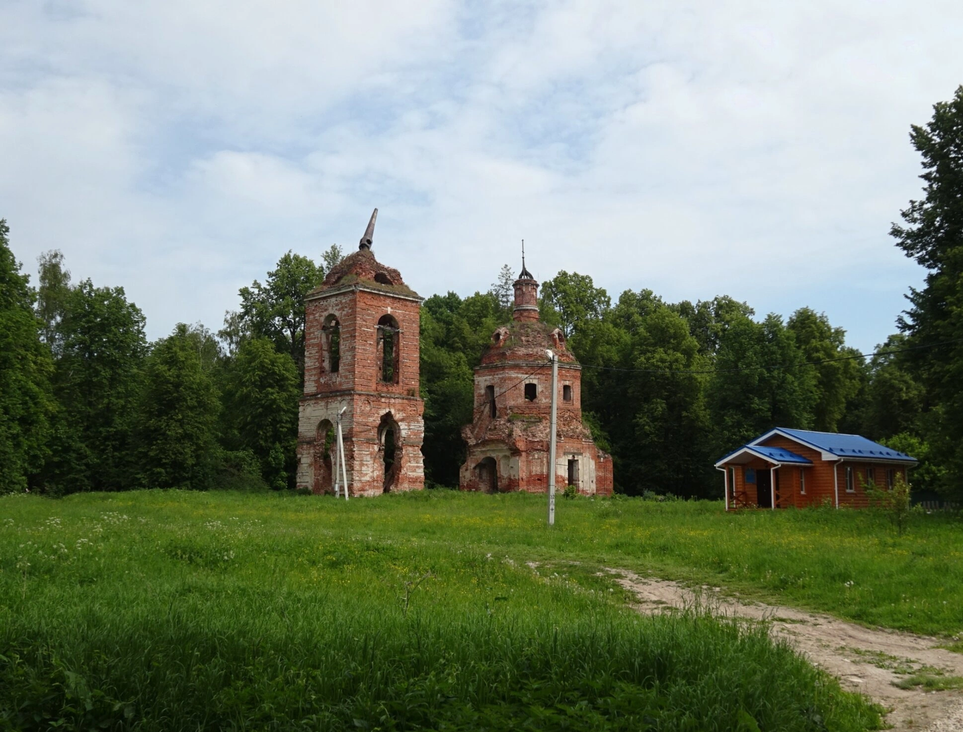 На снимке зафиксирован скорбный вид памятника: сохранившиеся стены и колокольня, поросшие деревьями и кустарником, свидетельствуют о былом величии, но также и о глубокой ране, нанесённой духовной жизни этого места. Руины храма, окружённые скромной сельской застройкой и зеленью, являются безмолвным напоминанием о трагических страницах истории и призывают к молитвенной памяти о утраченном наследии.