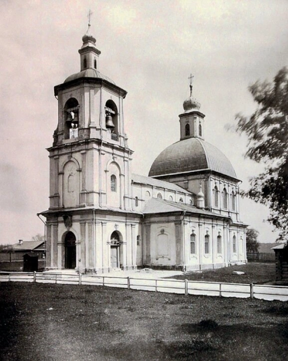 На исторической черно-белой фотографии запечатлён храм иконы Божией Матери «Знамение» в Переяславской слободе. Этот православный храм, расположенный в Мещанском районе Москвы, ведёт свою историю с конца XVI века. Существующее каменное здание было возведено в 1757–1766 годах на средства прихожан и доброхотных дателей и освящено в честь чтимой иконы Божией Матери «Знамение».