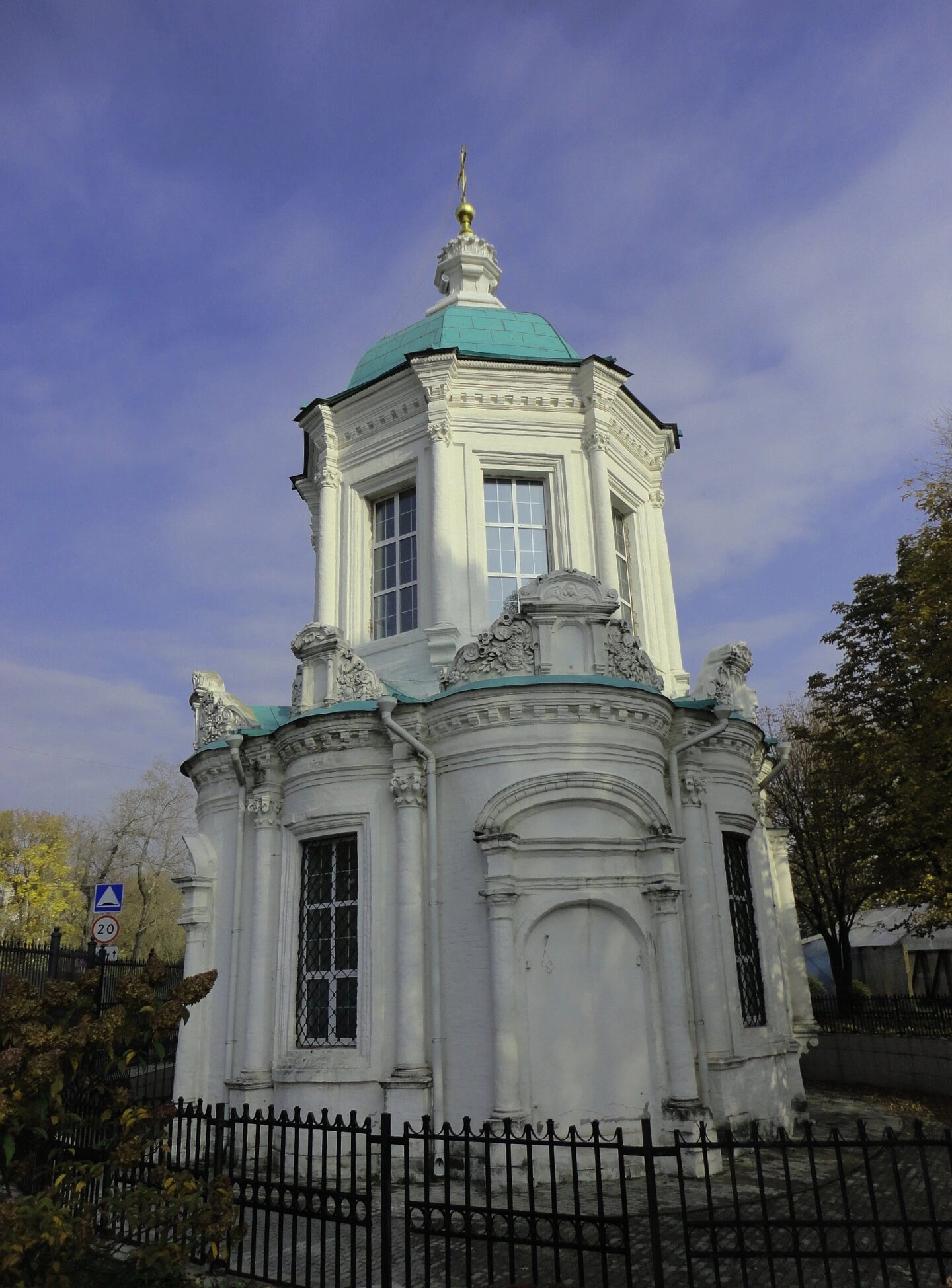 Архитектурный облик храма уникален и выполнен в стиле московского барокко. Это двухъярусное центрическое сооружение, в плане представляющее собой восьмилепестковую фигуру. Нижний ярус богато украшен изящной белокаменной резьбой, придающей зданию лёгкость и нарядность. Над основным объёмом возвышается крупный световой восьмерик, увенчанный зелёным гранёным куполом, который покоится на высоком барабане сложной формы. Фасады украшены фигурными фронтонами и изящной композицией из волют, подчёркивающими стилистическое единство постройки.