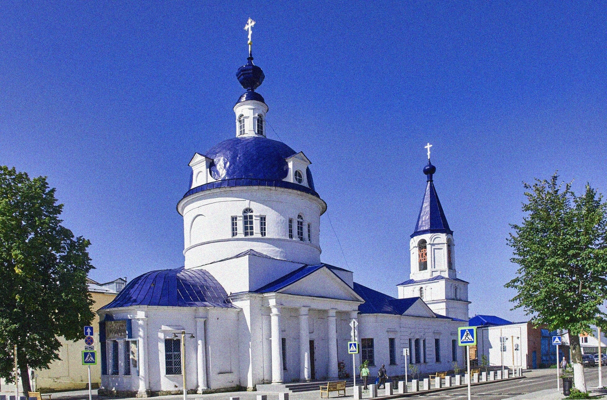 На представленной фотографии запечатлён старинный православный храм во имя святого пророка Божия Илии, расположенный в древнем городе Зарайске Московской области. Это величественное сооружение является одной из духовных доминант города и важным памятником церковной архитектуры.