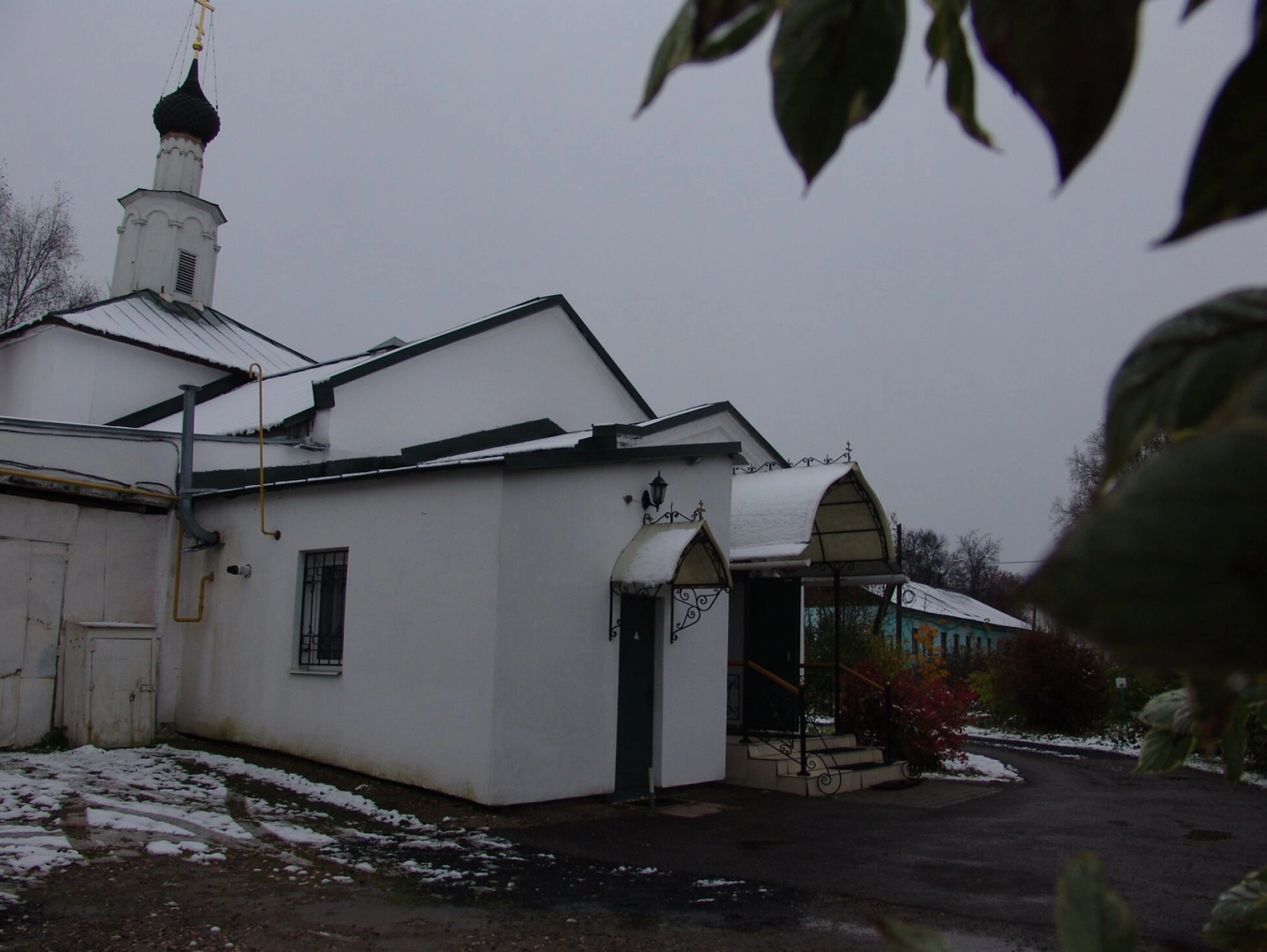 Храм расположен по адресу: Ярославская область, Ярославский район, деревня Кузнечиха, Центральная улица, 32а. Добраться до него можно автобусом от Ярославля по дороге на Вологду. Фотография передает благоговейную атмосферу этого святого места в зимний период, когда тонкий снежный покров подчеркивает строгую красоту церковной архитектуры и создает особое молитвенное настроение.